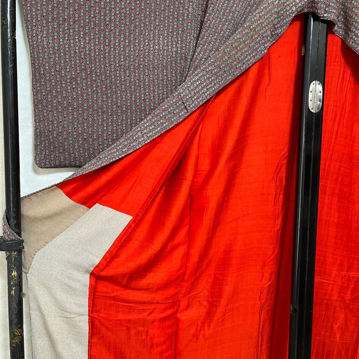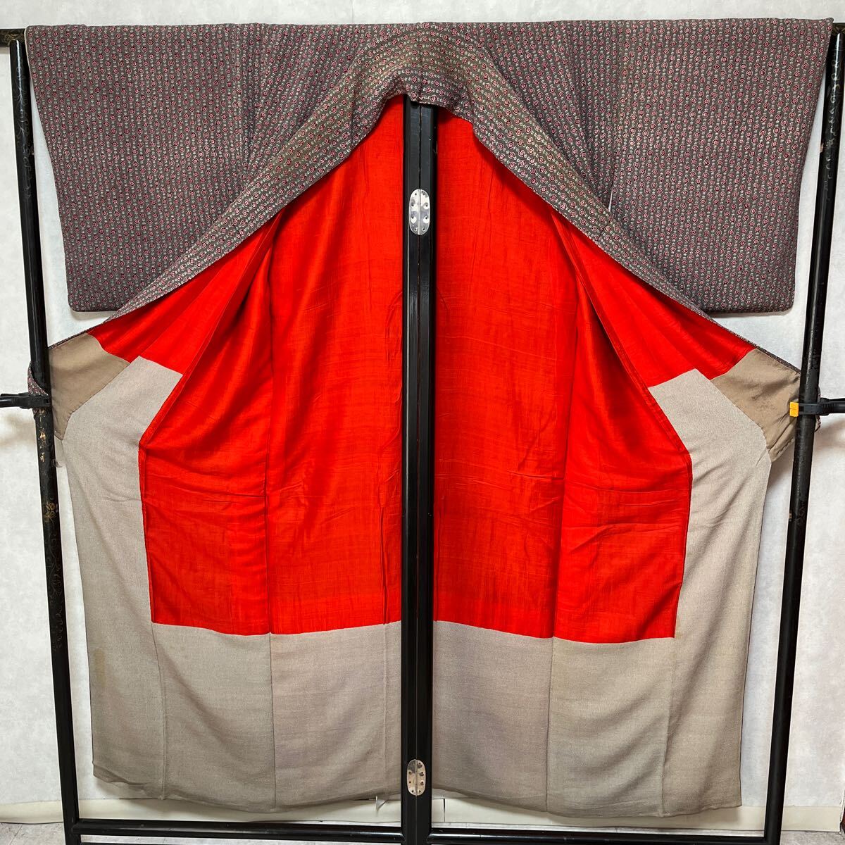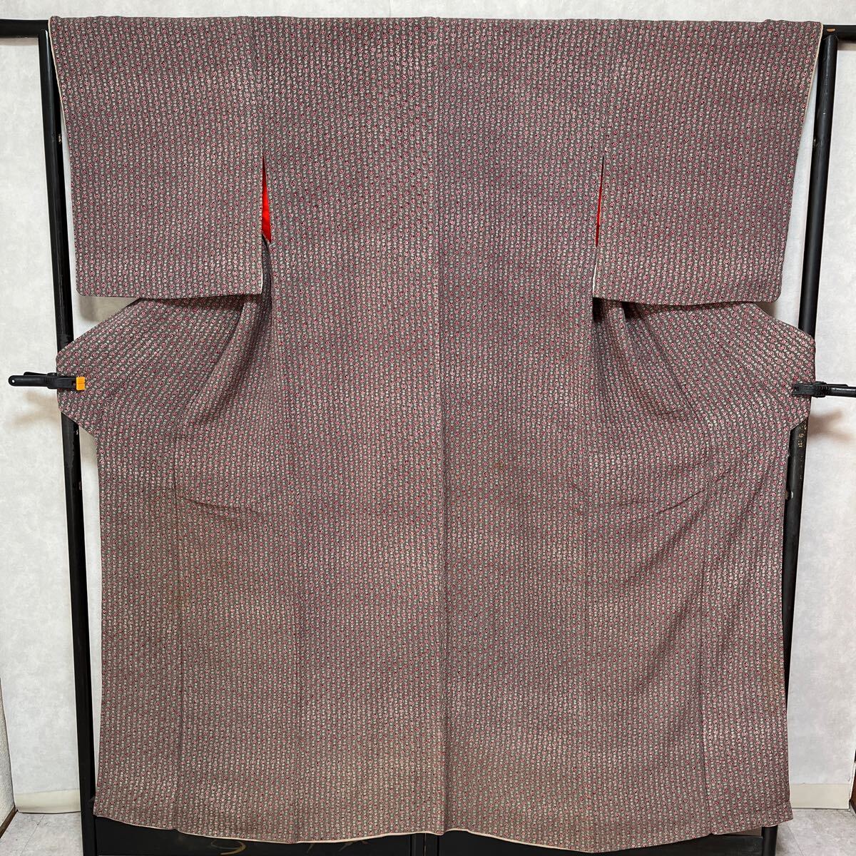 アンティーク 着物 小紋 茶 ドット 水玉 正絹 縮緬 昭和レトロ 大正ロマン モダン 和洋折衷コーデ リメイク く26-02t