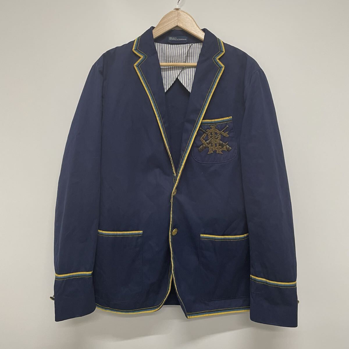 【POLO RALPH LAUREN】ポロラルフローレン テーラードジャケット 金ボタン スクールジャケット 44 40S イタリア製 ネイビー ブレザー 32