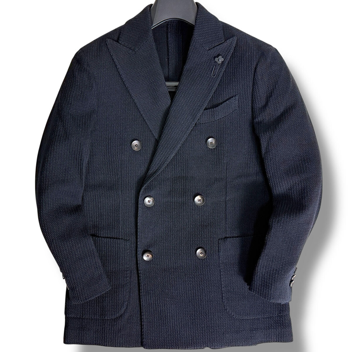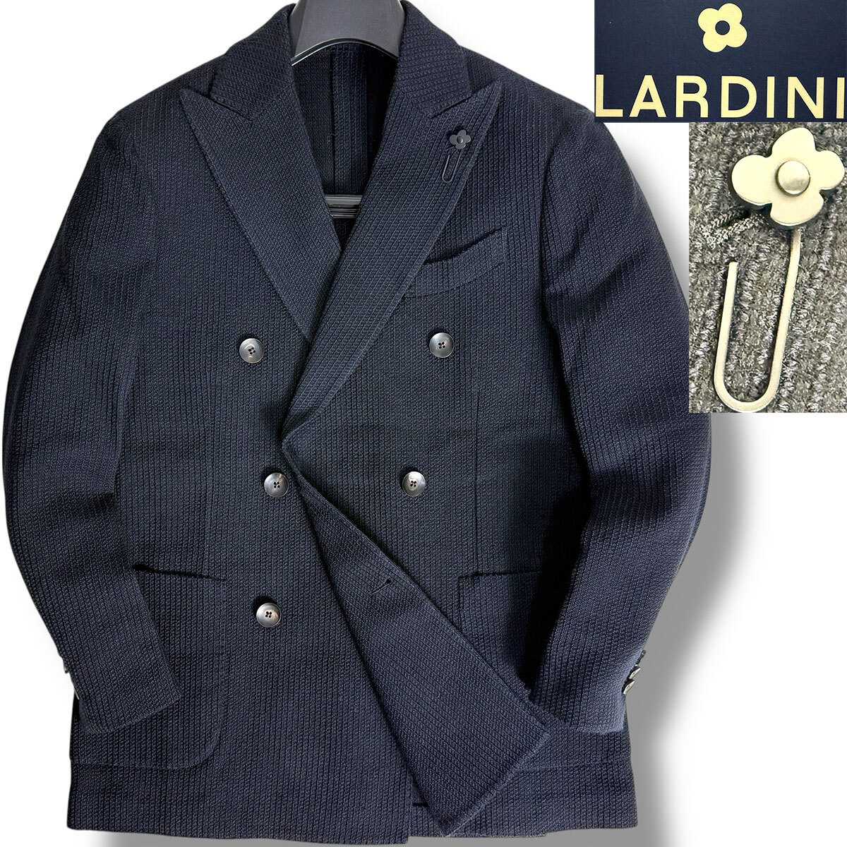 J4063 超美品 ラルディーニ 現行 ダブルニット編 テーラードジャケット ブラック 44 LARDINI