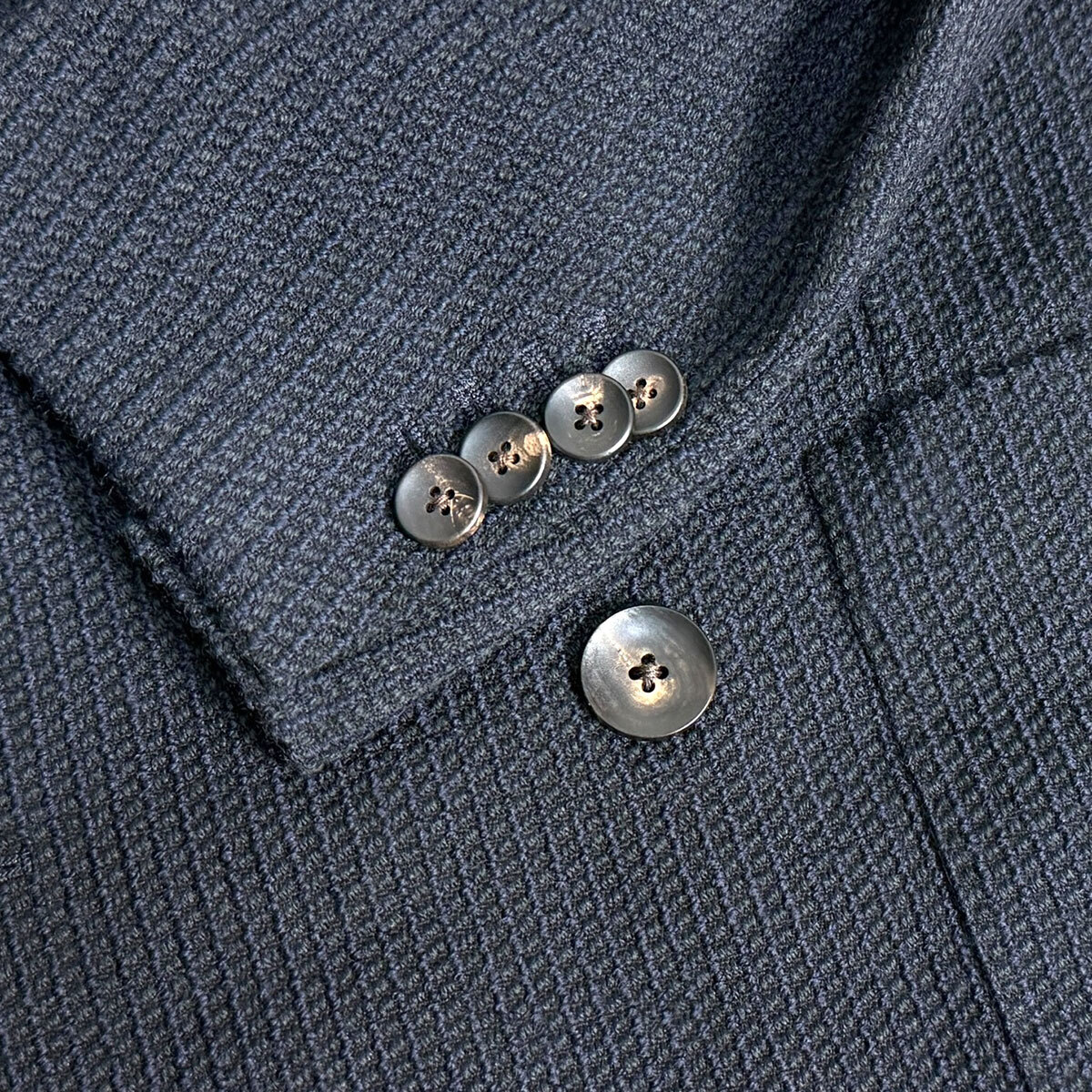 デザイン:フロントダブル6つボタン2掛け、サイドベンツ、背抜き裏地、袖本切羽。