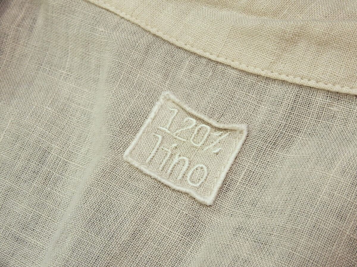 120%リノ シャツ サイズ表記:40 お色:ベージュ系 素材:麻100% 平置き実寸で 身幅55 着丈59 裄丈36㎝位です。 手洗い可 |