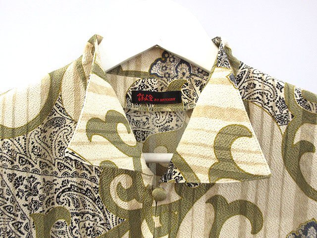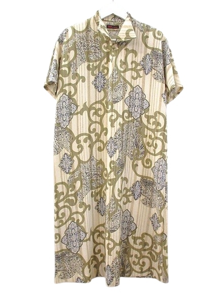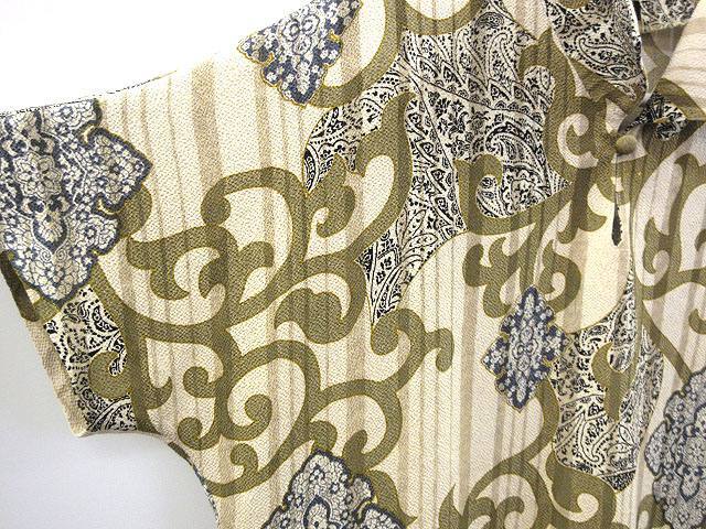 シセンドウ 詩仙堂 HITOSHI TAMURA ちりめん 絽縮緬 ワンピース チュニック ベージュ プリント 半袖 レディース