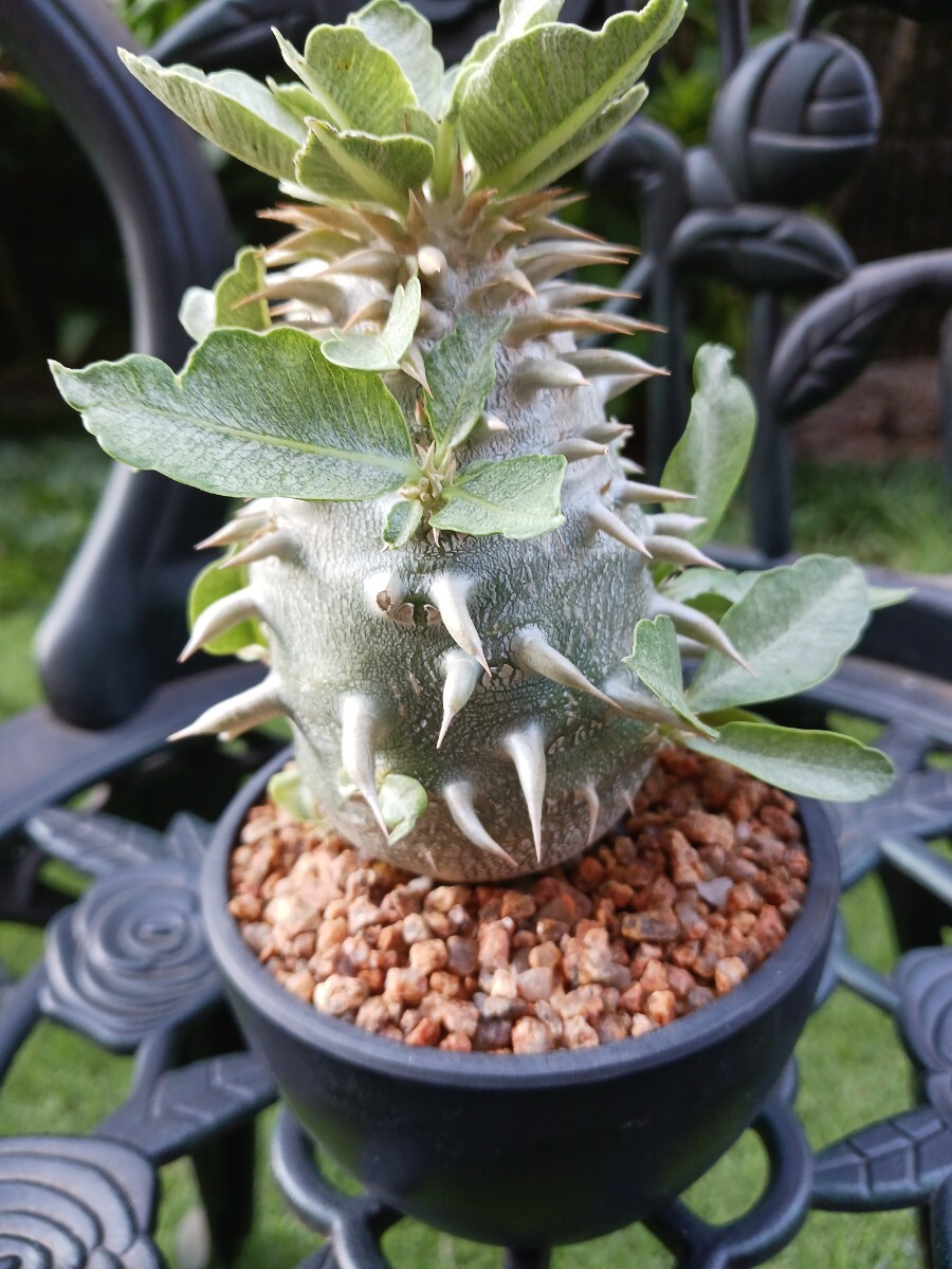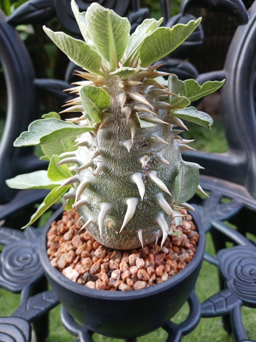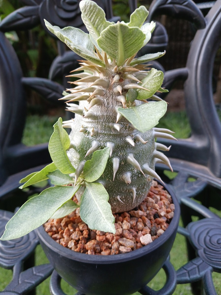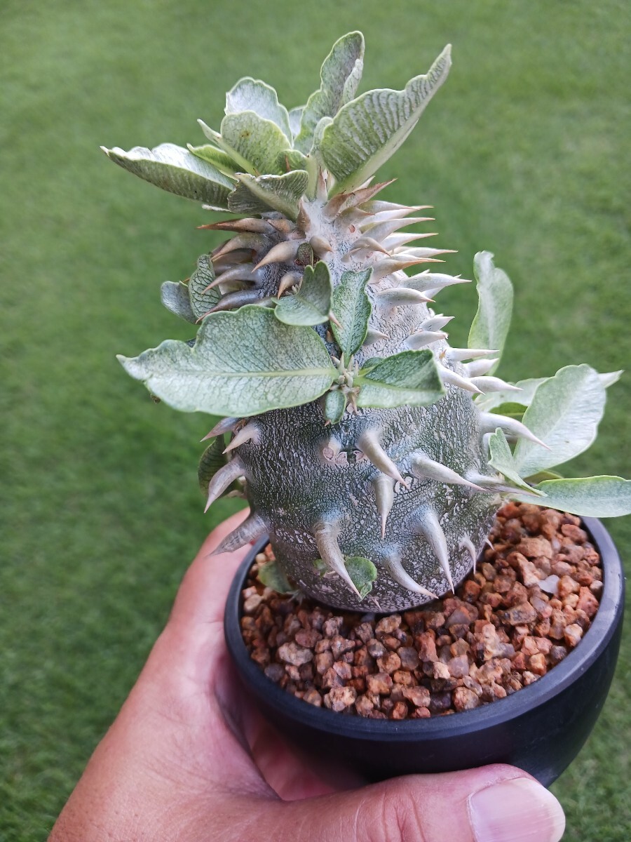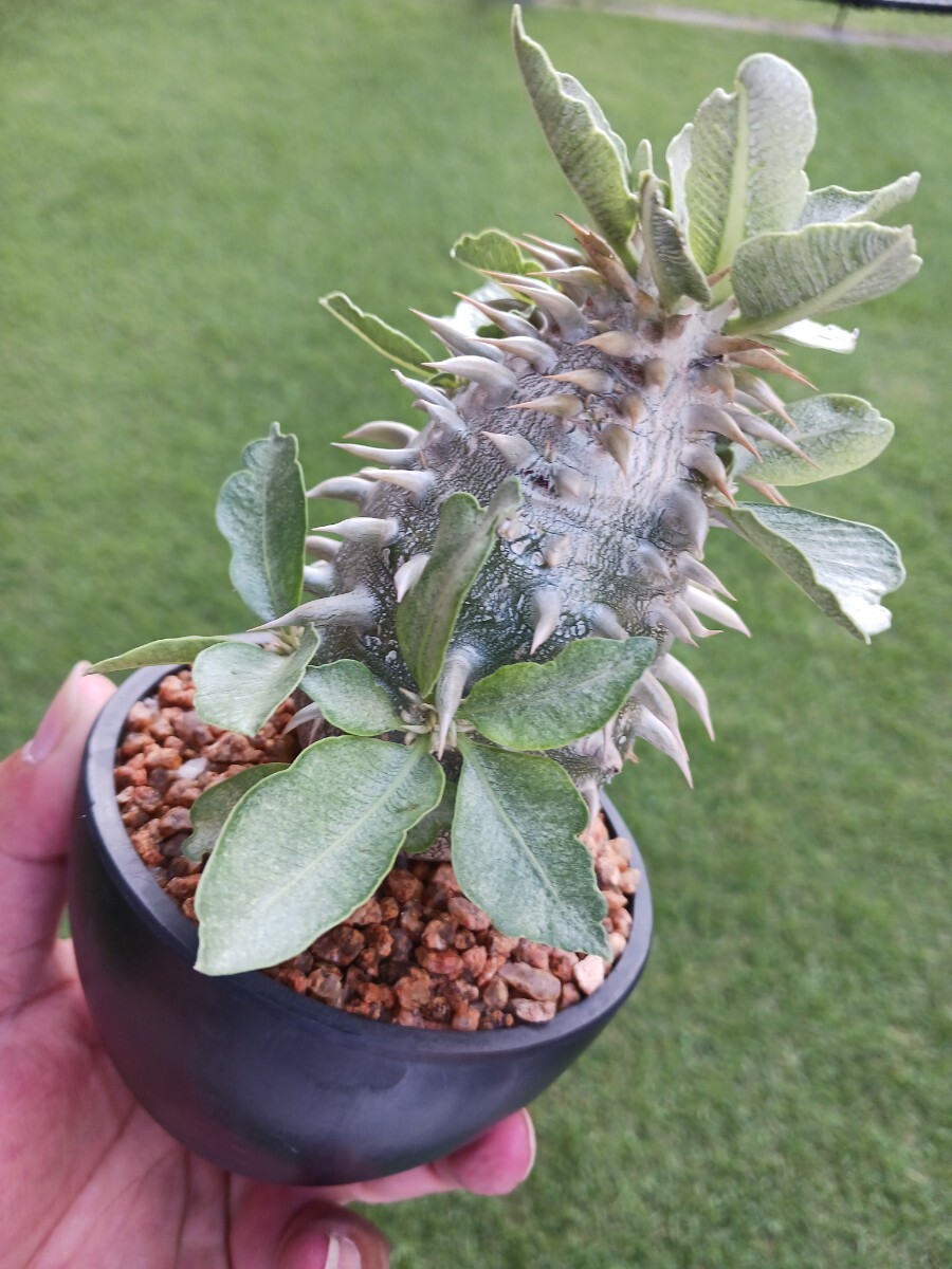 鉢のサイズ、高さ65ミリ、直径90ミリの黒い樹脂製ボウル型鉢に植えて管理しています。
