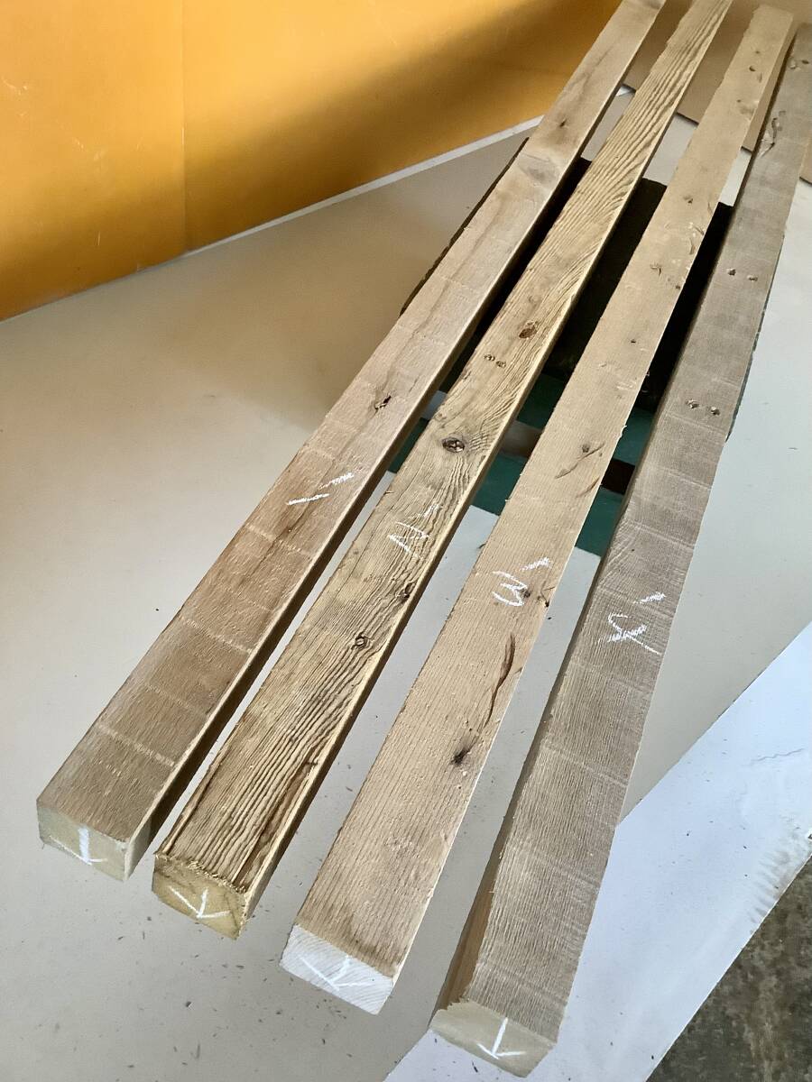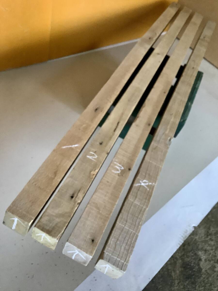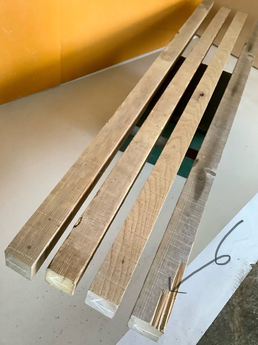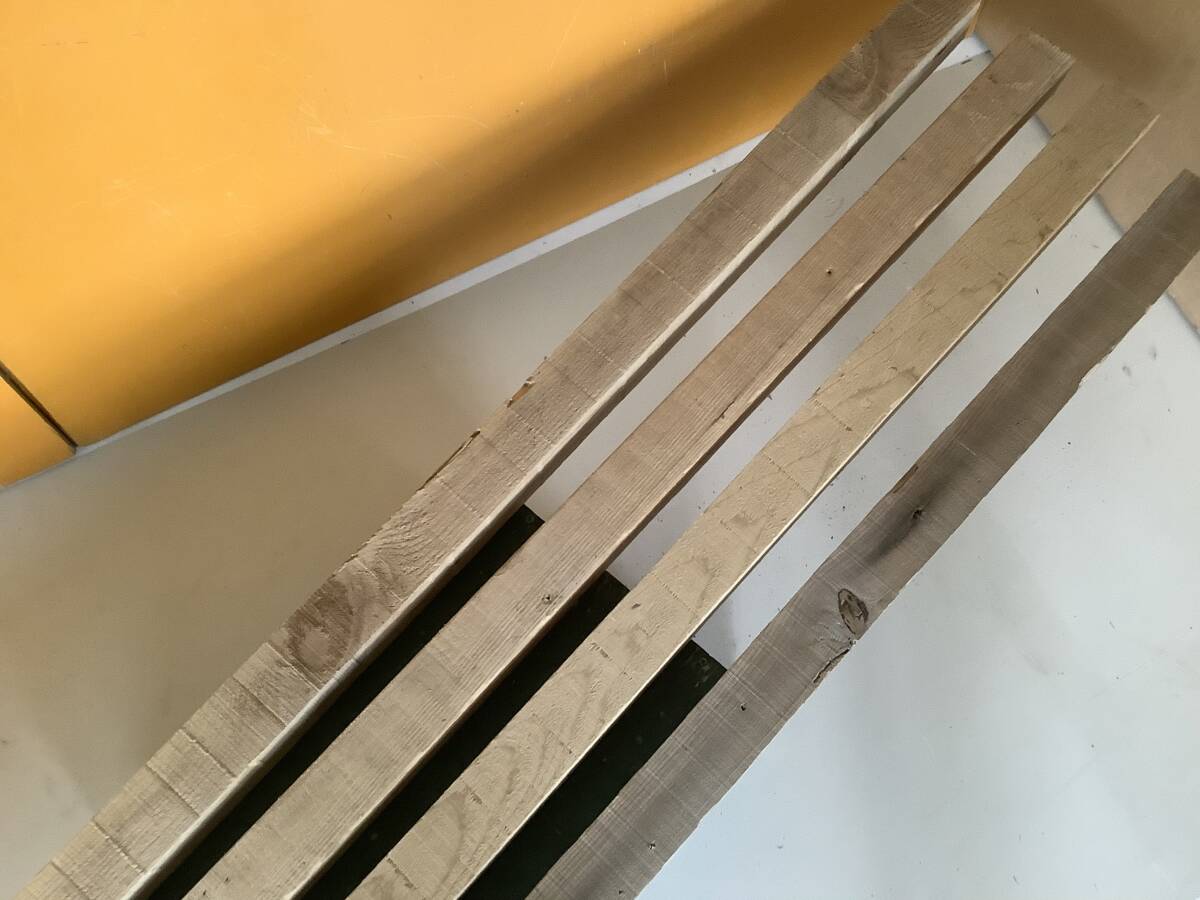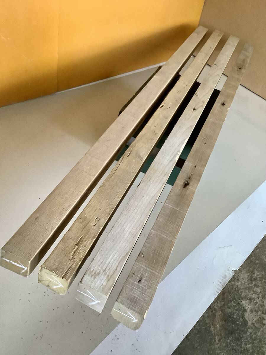 ご覧いただいてありがとうございます。 明治旧家木材保管庫から青森ひば古材垂木4本セットタイプ、4.5センチ角になります。写真でお確かめ下さい。長さは約136センチ前後が4本、重さは4本で5.1キロになります。矢印部分は瑕疵部分となります。 割れ 汚れ 、傷 、曲がり、釘穴、異物の付着、残釘などある場合があります。研磨木片は商品でありませんご注意ください。特に写真をじっくりと慎重にご覧いただきたいと思います。 また完全完璧を求める方のご入札はご遠慮いただければ幸いです。不都合ことがあったとしても落札後のクレームは一切お受けできません、了解できる方の御入札をお待ちしております。木面を研磨すると青森ひば特有の光沢と香りが漂います。青森ヒバは津軽半島五所川原市から竜飛岬までの中山山脈系に多く植生しております。多くあった製材所も近年は減少しております。青森ヒバ材の入手はだんだん難しくなると思われます。)青森ヒバは他の木材と比較して抜群の強度と耐久、不朽性を誇っております。こちらの青森ヒバは土に直接触れなければ半永久的風雪に耐る木材だと思っております。説明書きに誤りがあったならば、ご容赦のほどお願い申し上げます。建築資材 ガーデニング 、古民家修復 、インテリア素材等に使えるかと思っております。写真が全てですので慎重にご覧いただいて、重ねてのお願いになります。ノークレーム ノーリターンにてお願いいたします。