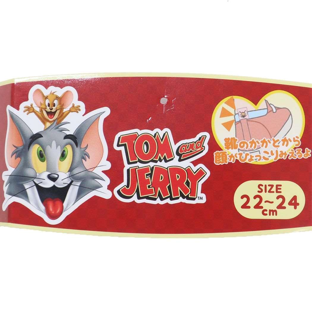 靴のかかとからキャラの顔がひょっこり見えて可愛い 大人気トム&ジェリーグッズにまたまた可愛いnewアイテム登場 こちらはとってもかわいい[タグ付きソックス]靴のかかとからキャラクターの顔がひょっこり見えますキュートな女の子のお洒落は足元から…かわいい靴下いっぱいあるからお気に入りのソックスでおしゃれを楽しんでねサイズ:約22-24cm素材:綿/ポリエステル/ポリウレタン