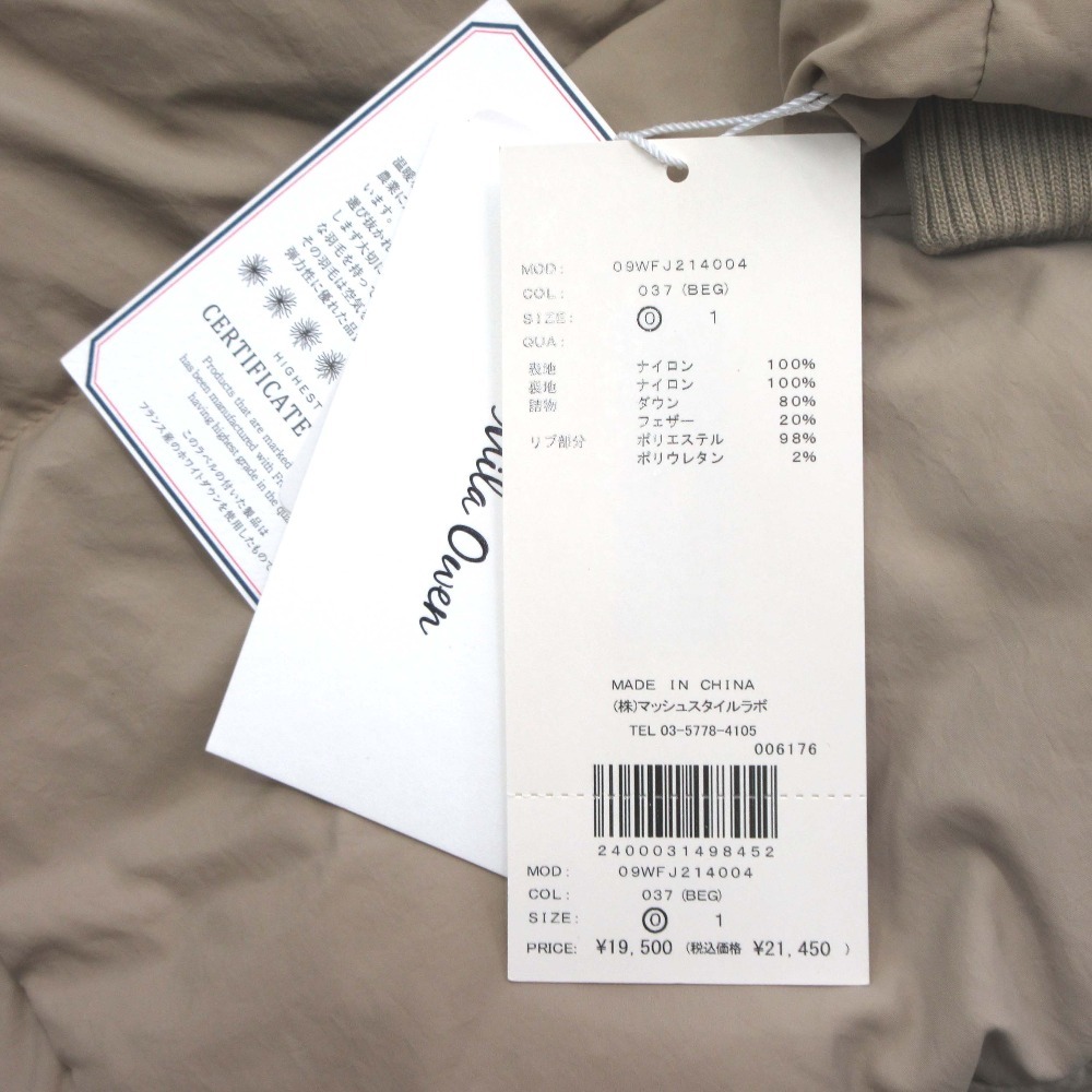 未使用 Mila Owen ミラオーウェン ミディアム丈 カーディガンライク ダウン ジャケット コート アウター ホワイトダウン 0 ベージュ