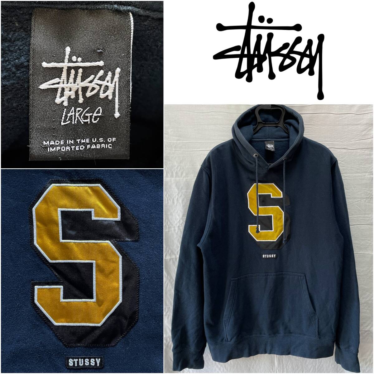 黒タグ USA製 STUSSY ステューシー パーカー L ネイビー アメリカ製 90' ビンテージ