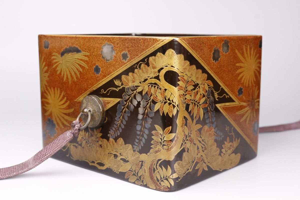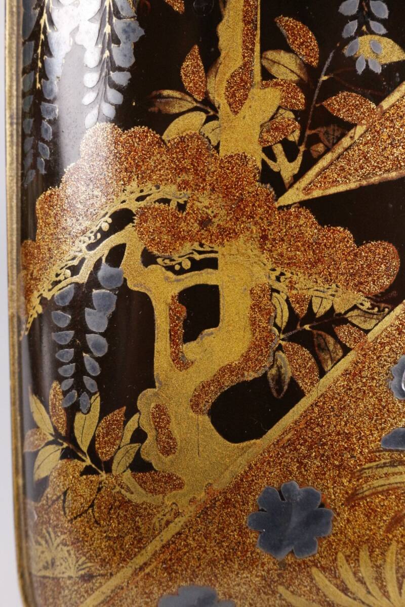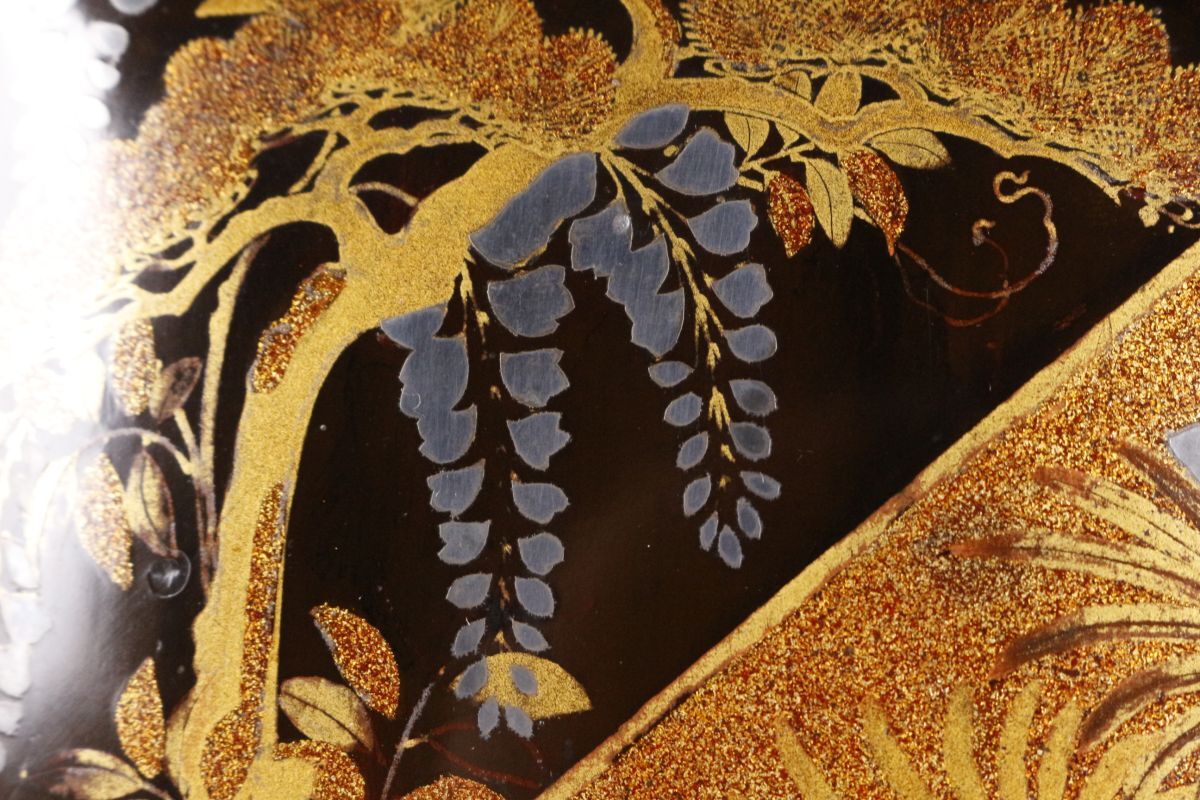 見た目も華やか、非常に豪華な蒔絵が施された手箱のご紹介です。 落ち着いた色彩でありながら絢爛な雰囲気もあり、その美しさは見る者を魅了します。 繊細な巧みな技で仕上げられており、植物それぞれが持つ力強さと美しさが丁寧に表現されています。 迫力があり活気に満ちた絢爛豪華な逸品をこの機会に是非お手元にてご堪能下さい。