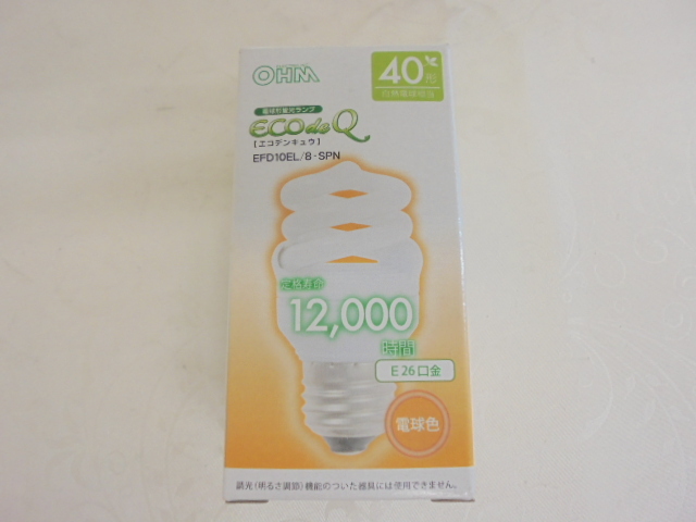 【KCM】JHKZ-142★新品・箱傷み★OHM オーム電機 エコデンキュウ 電球形蛍光灯 スパイラル E26口金 40形 1個入 電球色 EFD10EL/8-SPN
