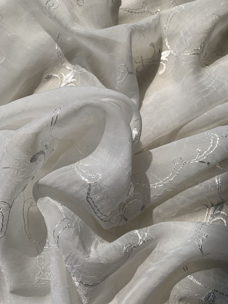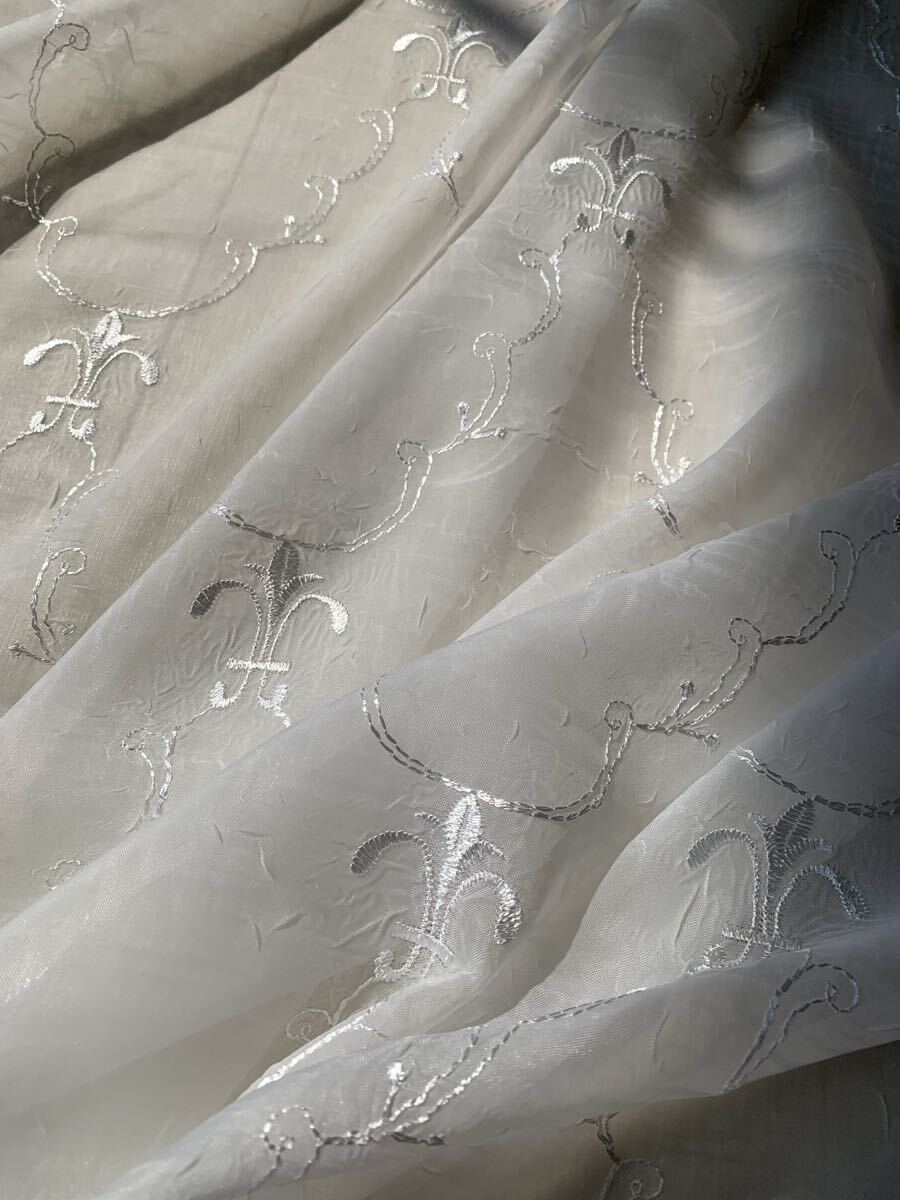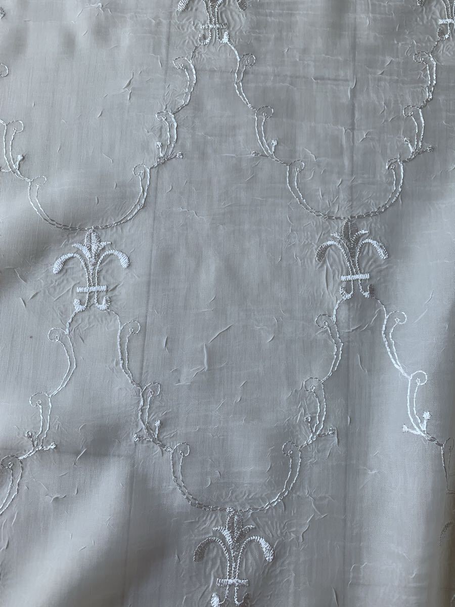 ●トルコ製、クラシックでお洒落なチヂミ加工のカーテン用レース生地●アイボリー色のやや厚みの有るしっかりした生地です●カーテンはもちろん、カフェカーテン、カバー等色んな用途にご利用下さい●