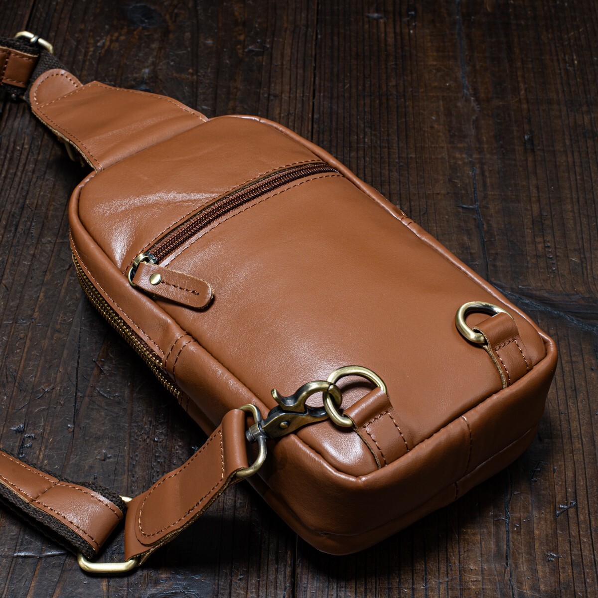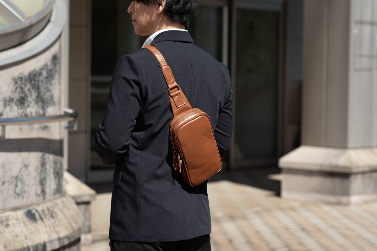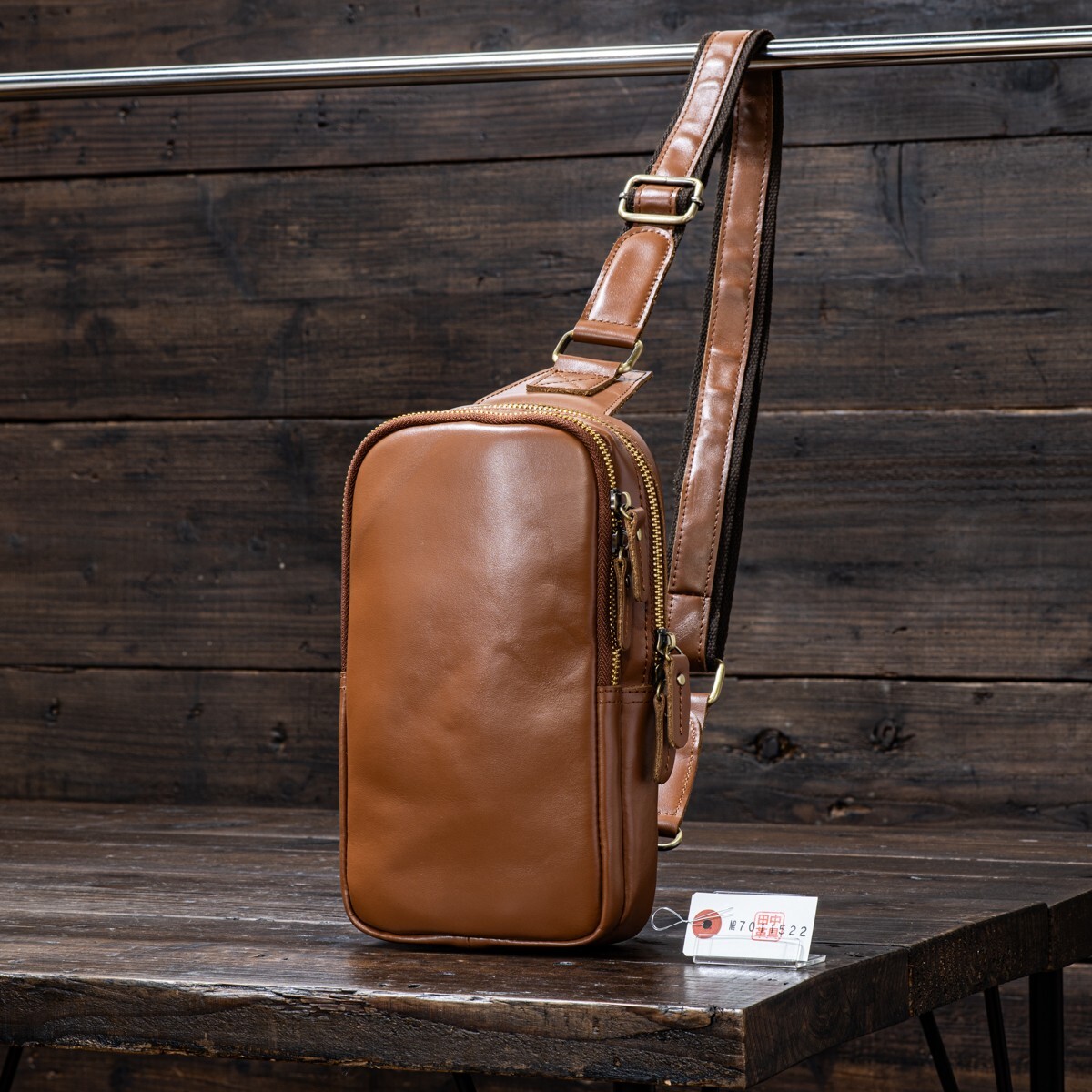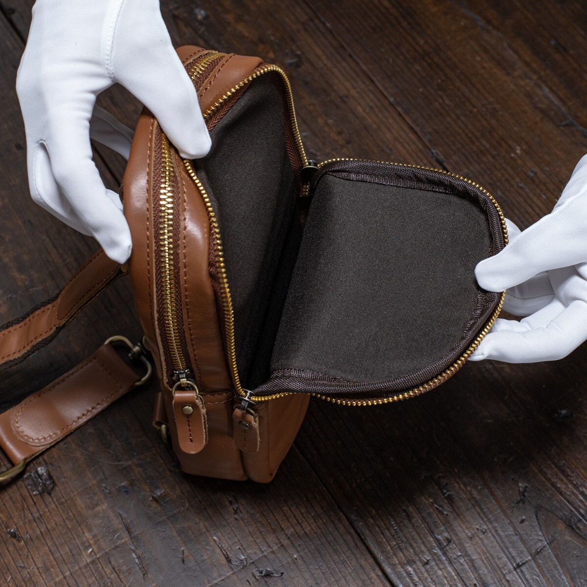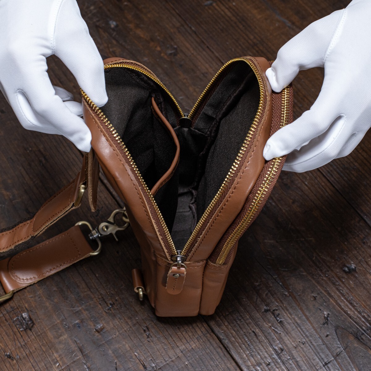 ボディバッグ【牛革】ワンショルダー メンズ 本革 ショルダーバッグ 新品 未使用 送料無料 1円 斜めがけ バック ブラウン 茶 田中革具