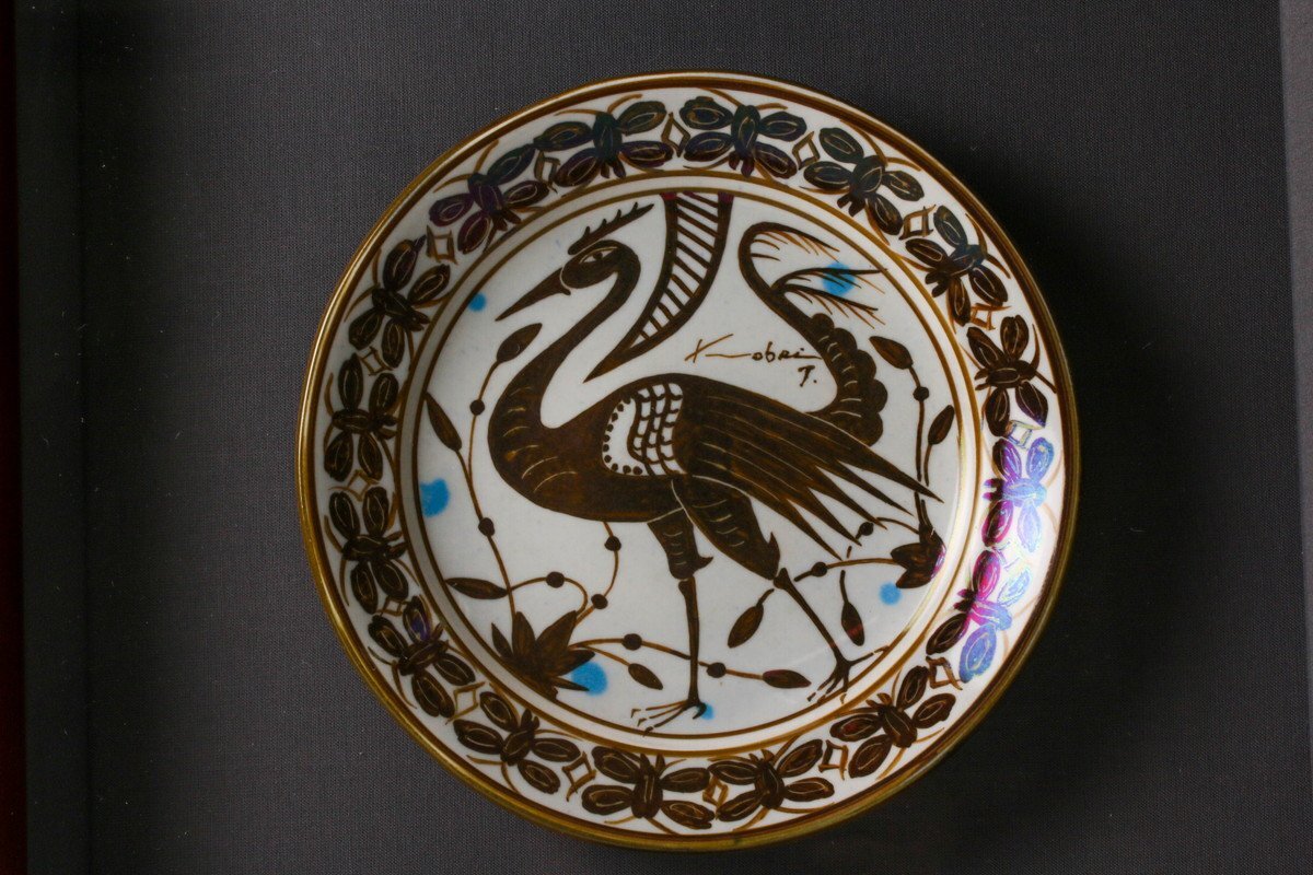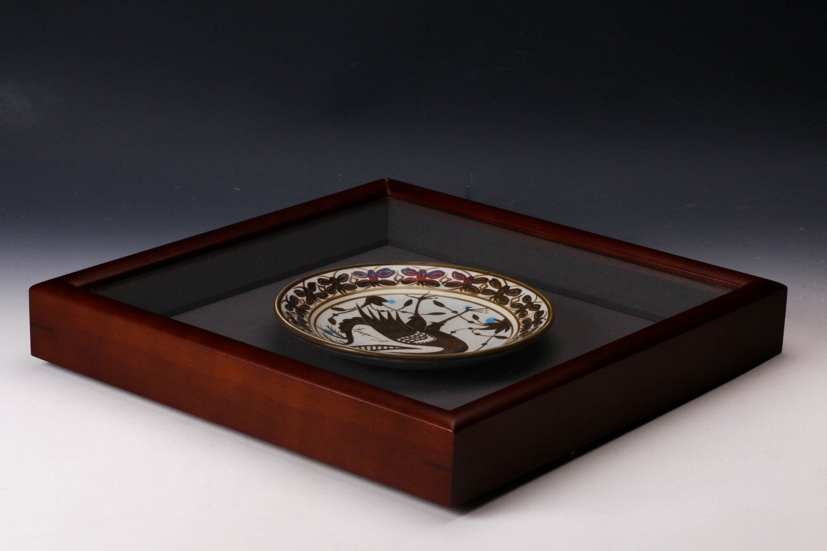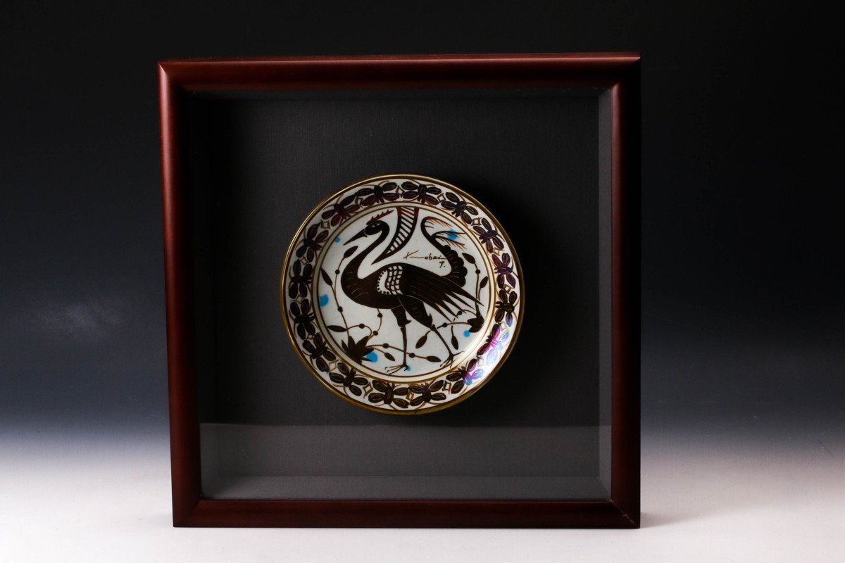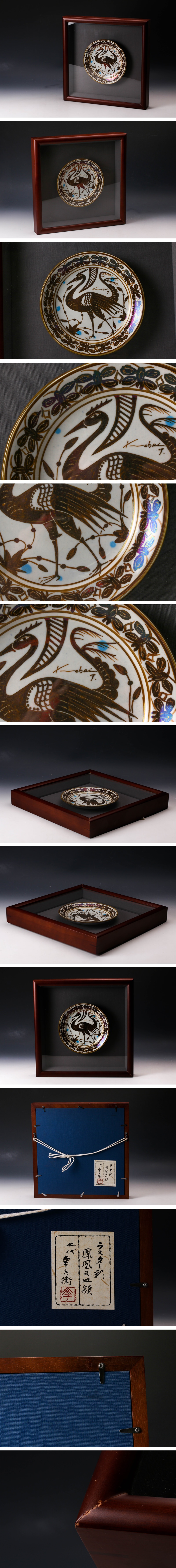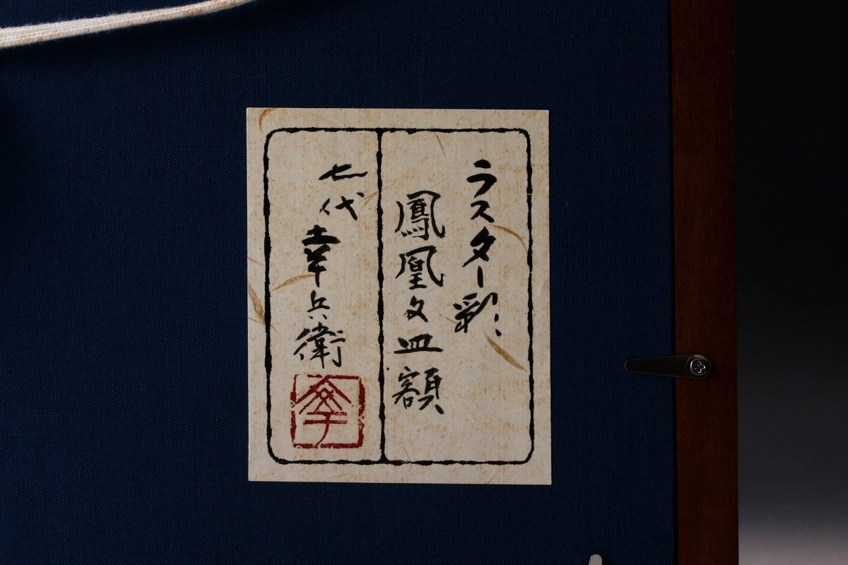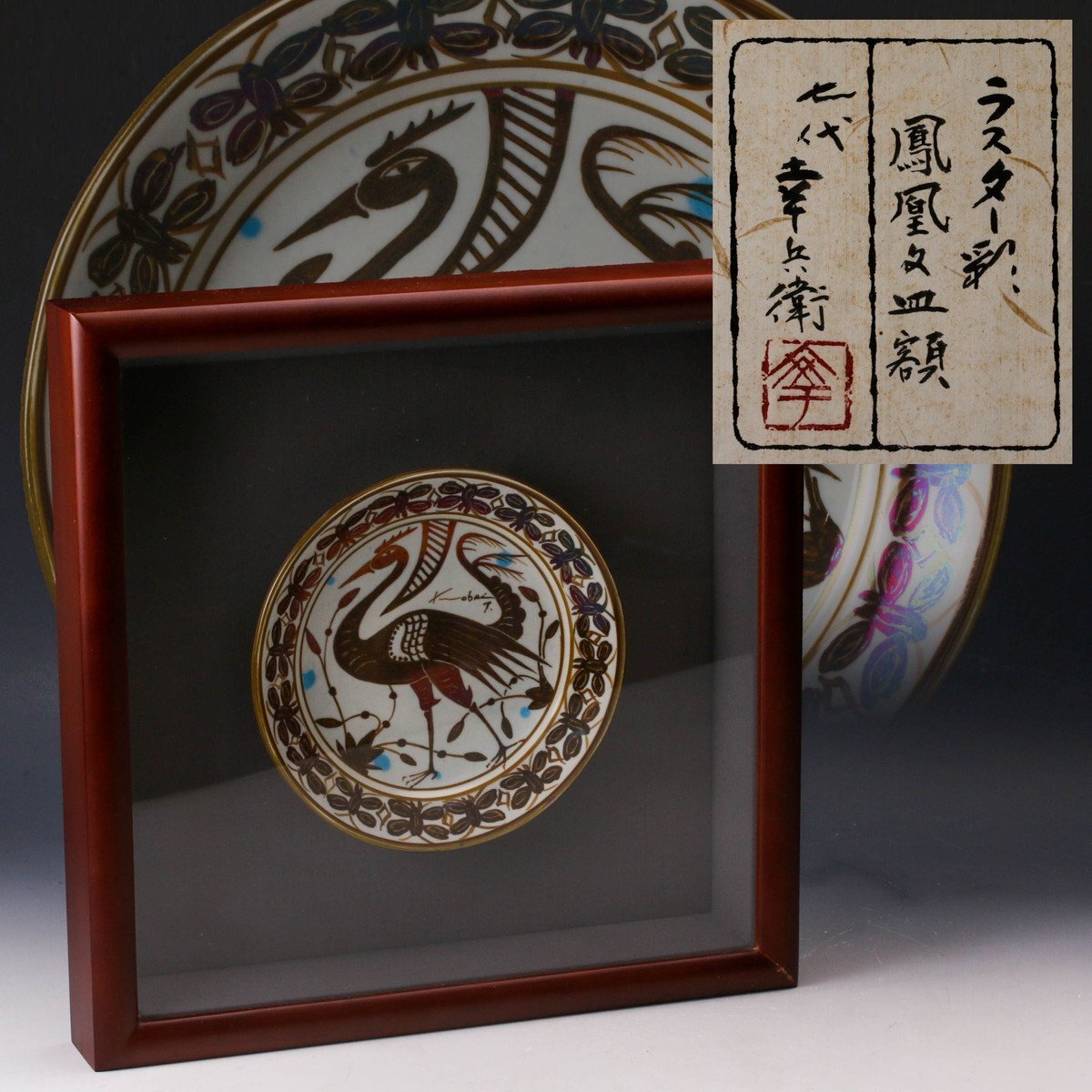 【佳香】七代 加藤幸兵衛(裕英) ラスター彩鳳凰文皿額 額装 共シール 本物保証