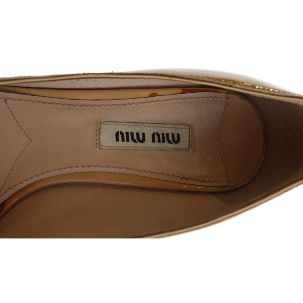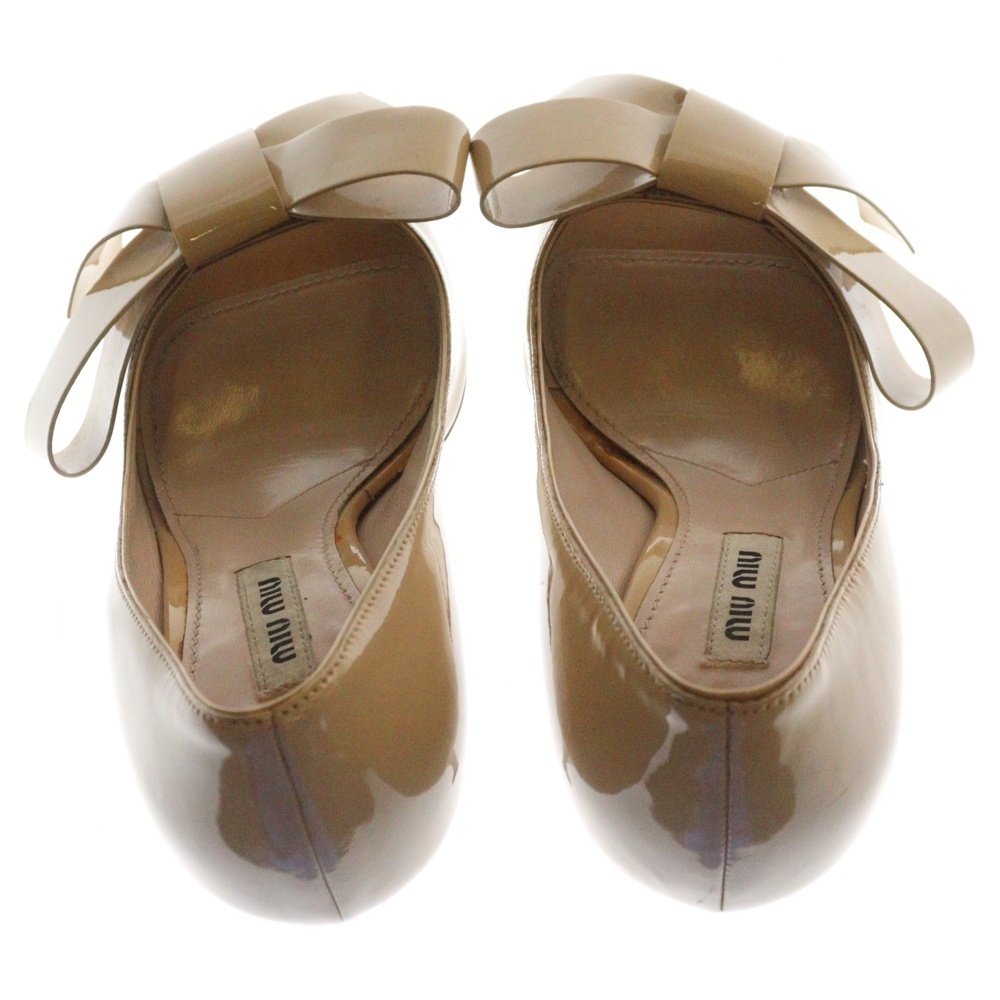 miumiu ミュウミュウ エナメル パテント リボン オープントゥ ハイヒール パンプス シューズ レディース ベージュ