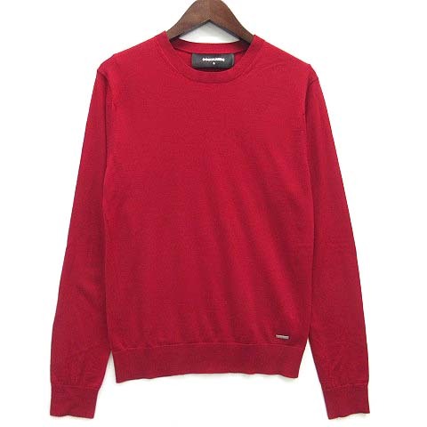 ディースクエアード DSQUARED2 ハイゲージ ウール ニット セーター 長袖 メタルプレート 2018AW レッド 赤 S S74HA0789 メンズ