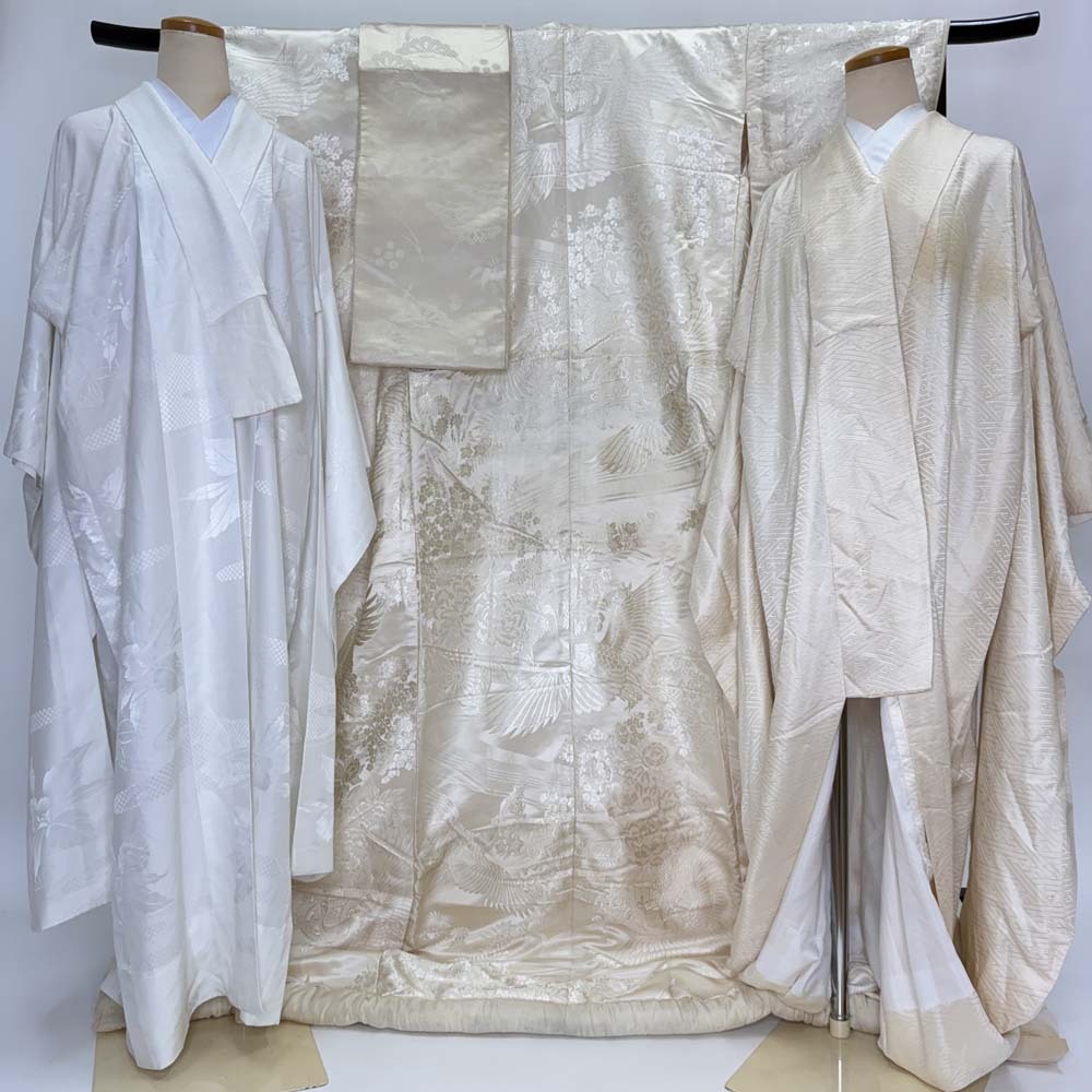 商品名 | 白打掛 4点セット 帯 掛下 白無垢 襦袢 白 撮影用 結婚式 花嫁衣装 裄67cm 身丈198cm 合繊 Lサイズ 4272 |