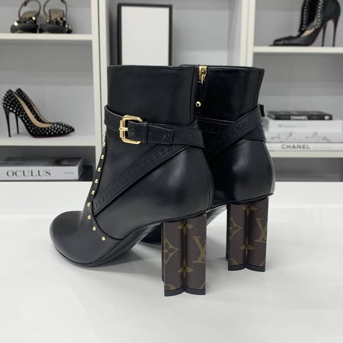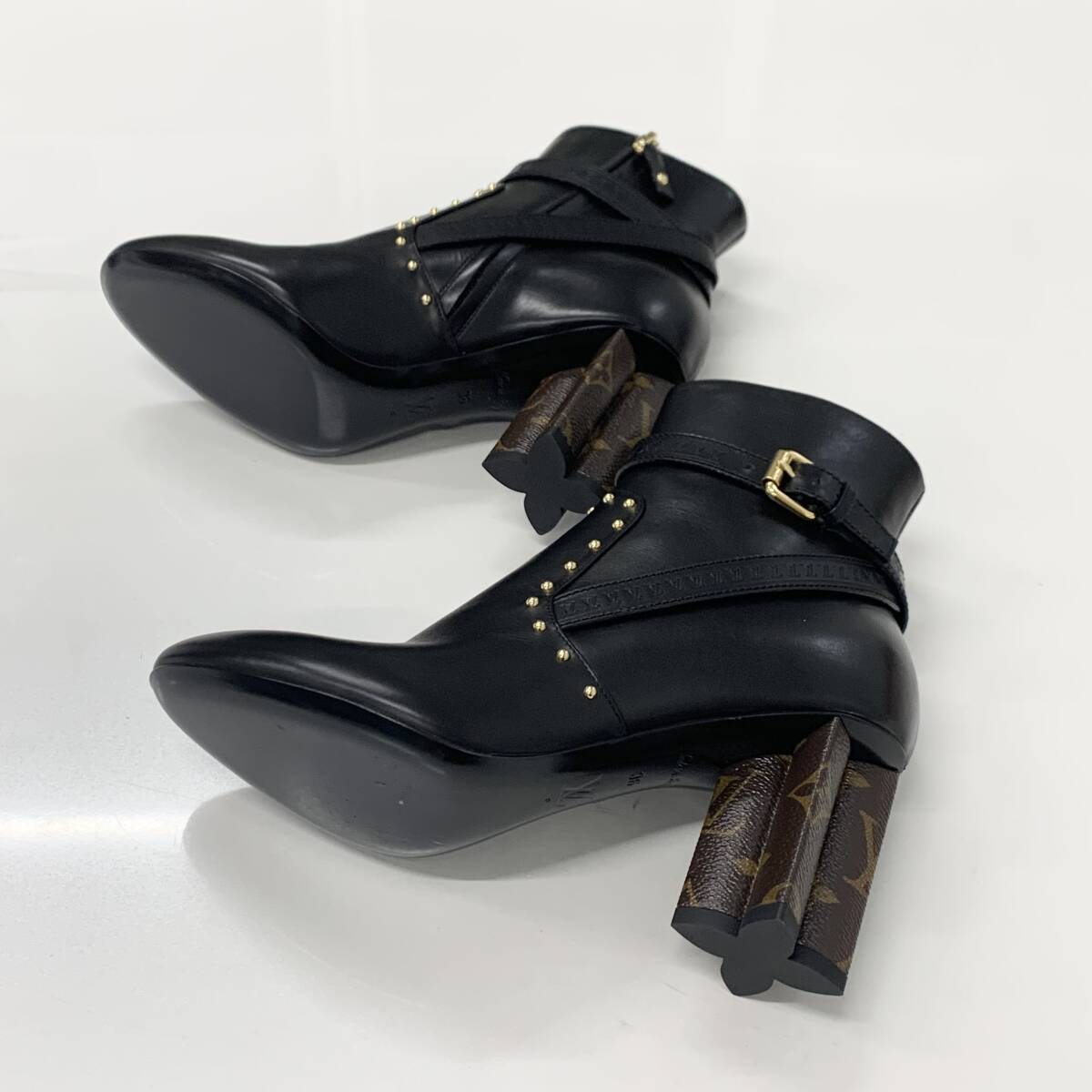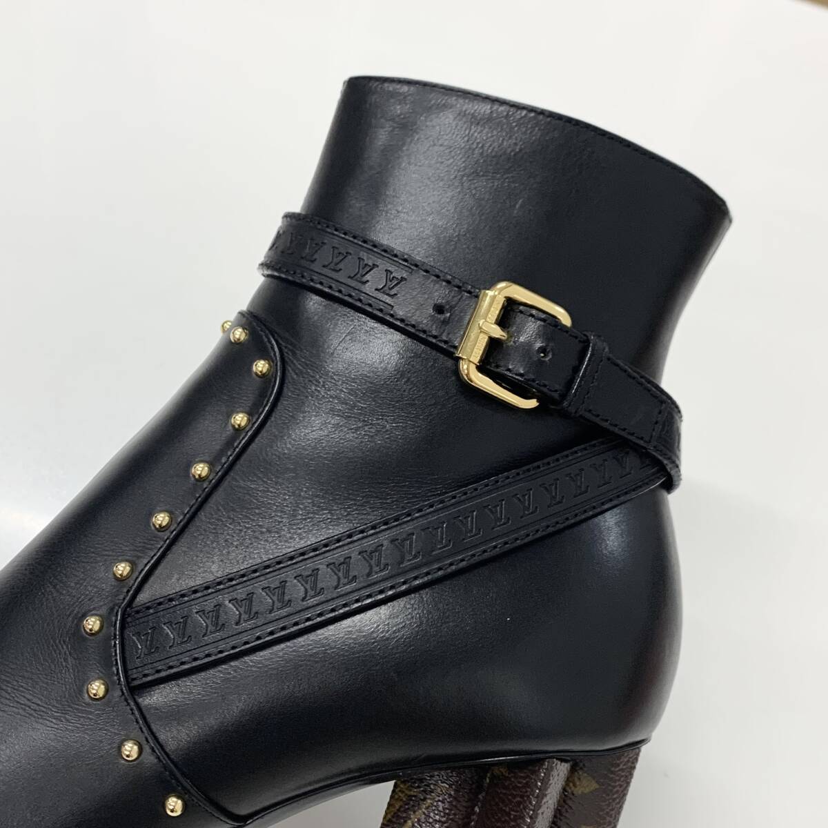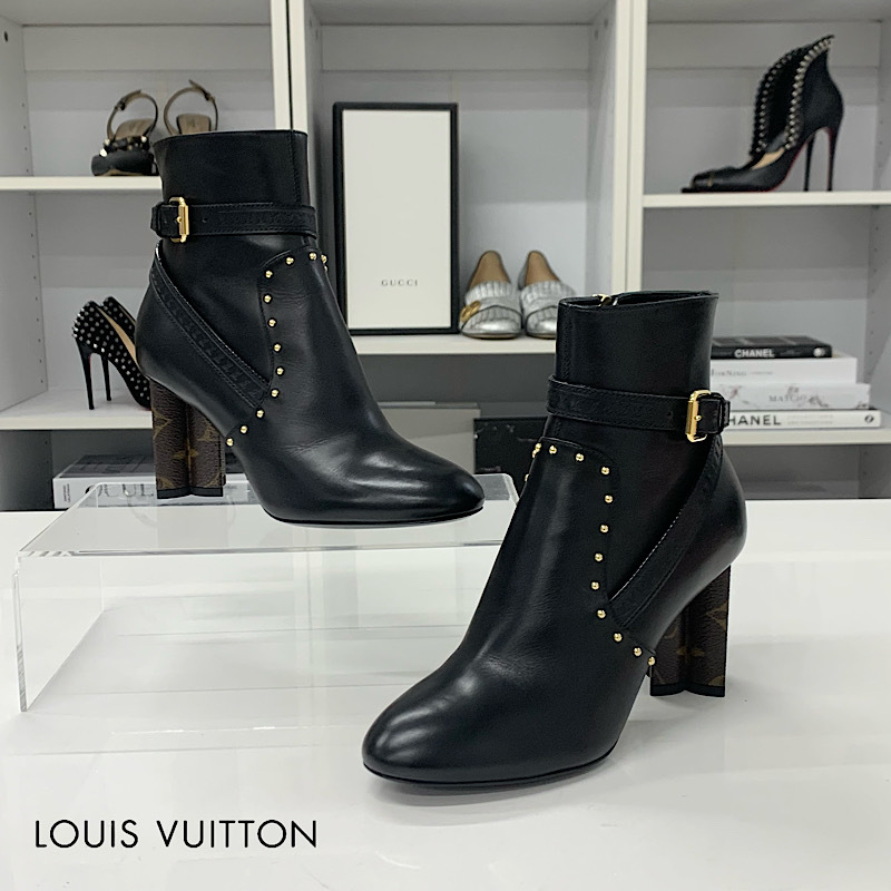 ヴィトン シルエットライン モノグラム スタッズ レザー アンクルブーツ ブラック