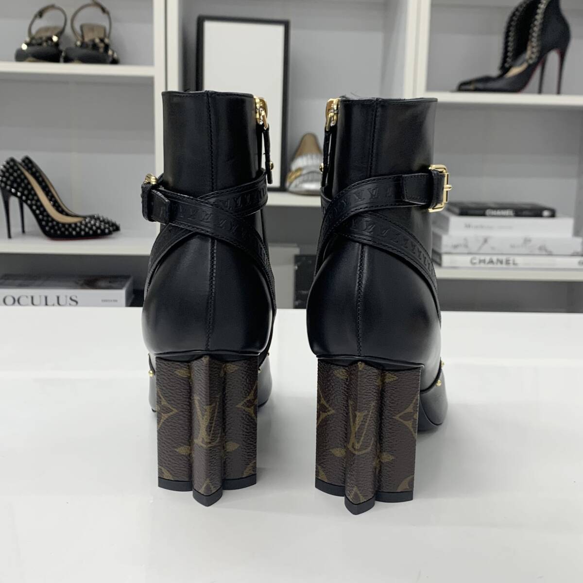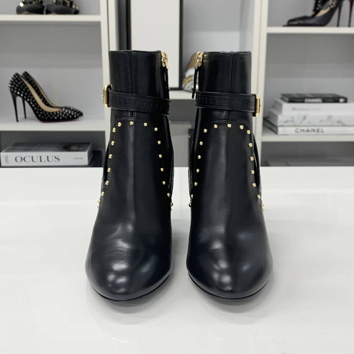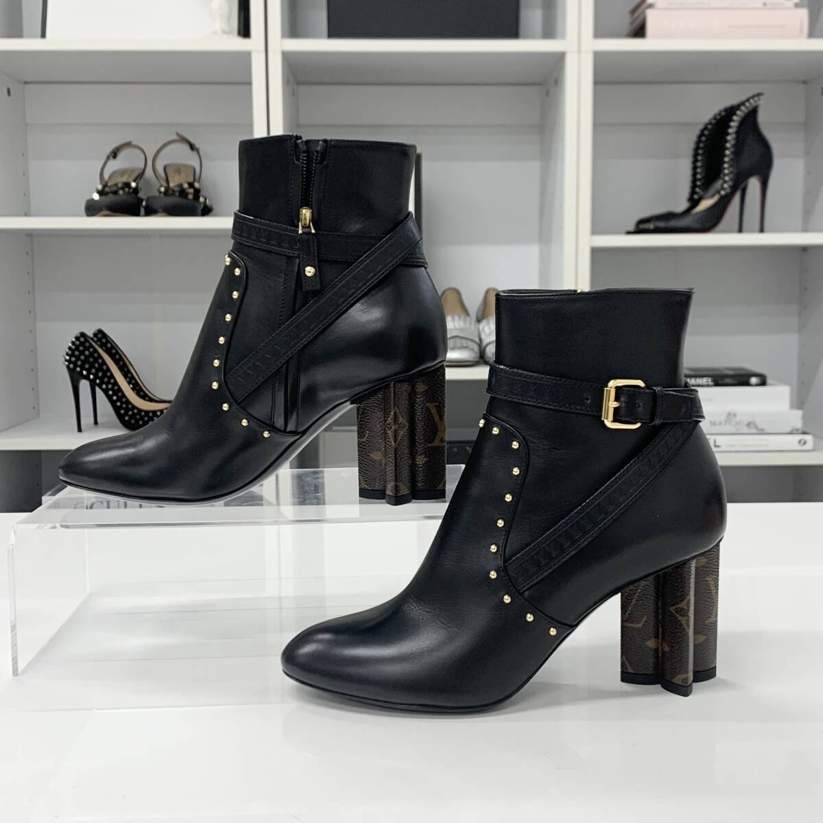 ヴィトン シルエットライン モノグラム スタッズ レザー アンクルブーツ ブラック