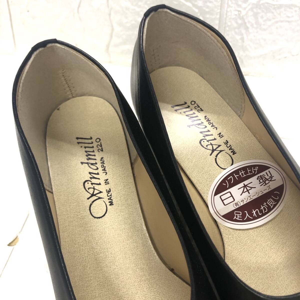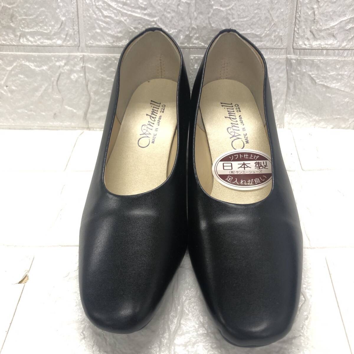 ★【在庫処分価格】Windmill パンプス ブラック 22㎝ EEEE ソフト仕上げ 日本製 ウレタンソール ヒール約3.5㎝☆T8-746J