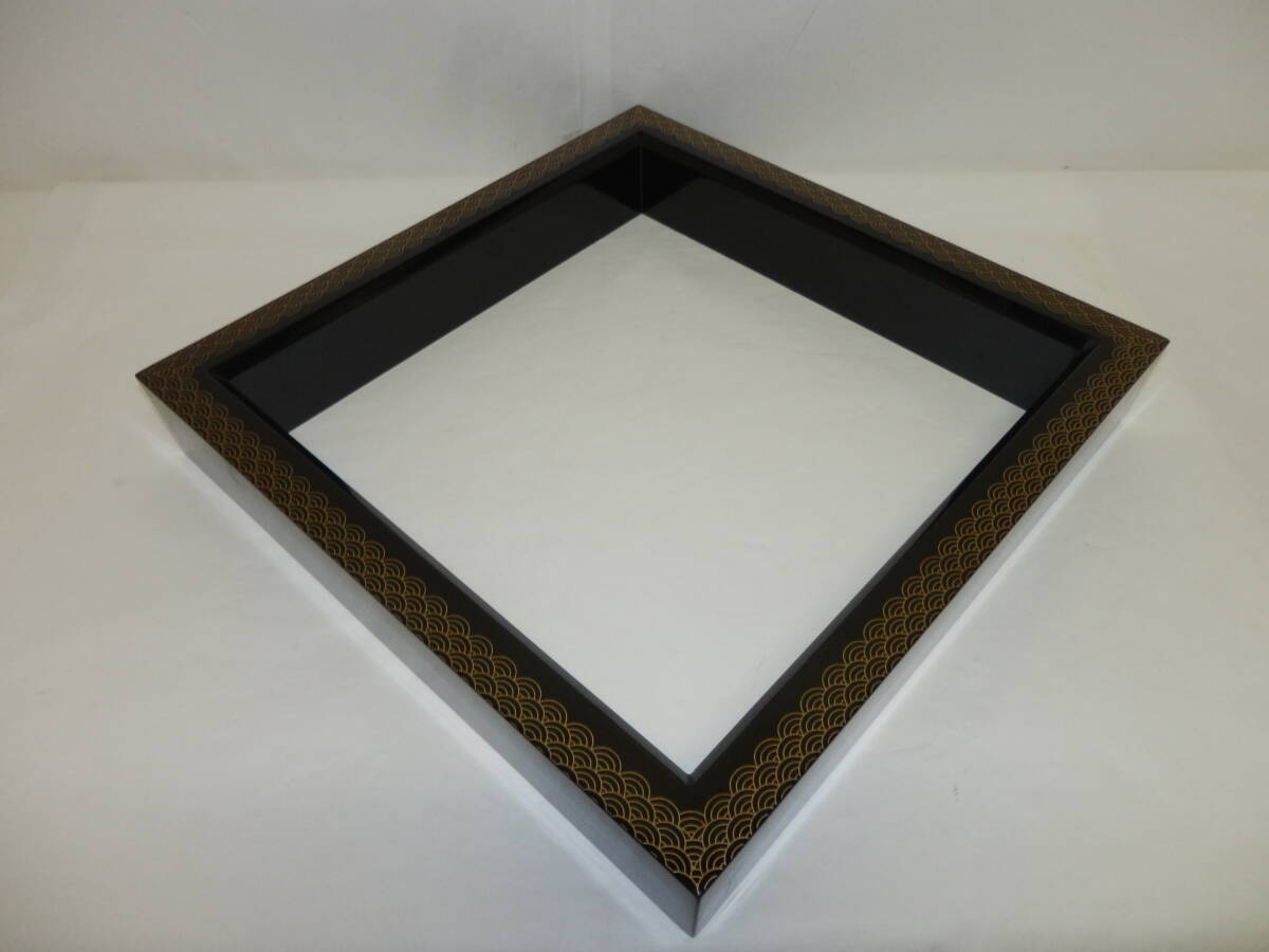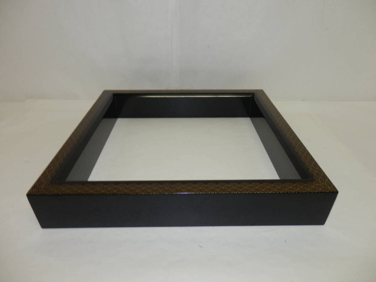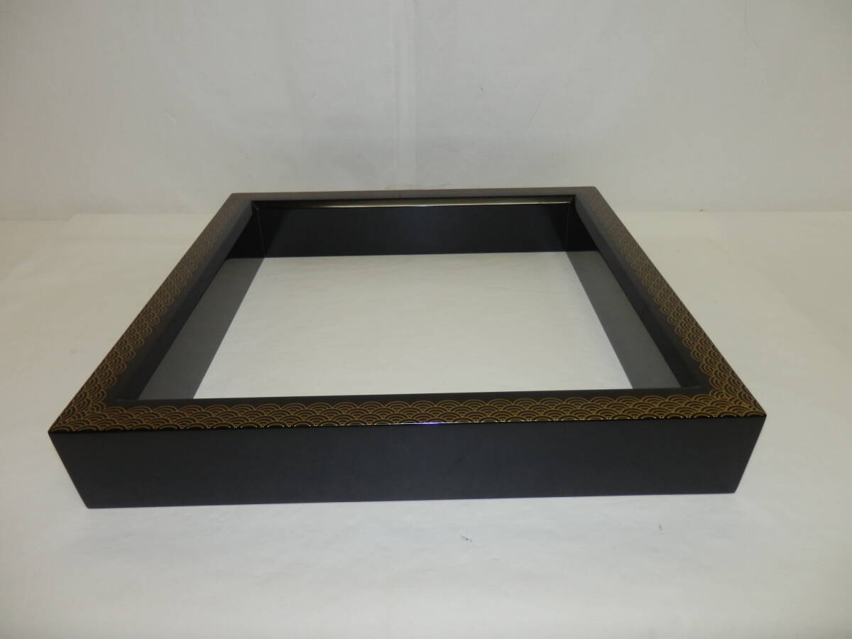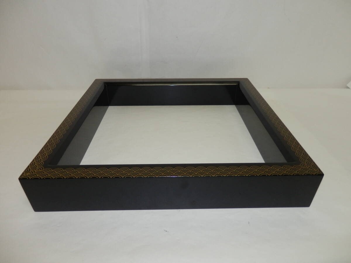 「中古品・茶道具」真塗の炉縁です。 青海波蒔絵です。上部四方約42.6cm 高さ約6.8cm 化粧箱「ヤケ、シミ等有」。 どうぞ宜しく。