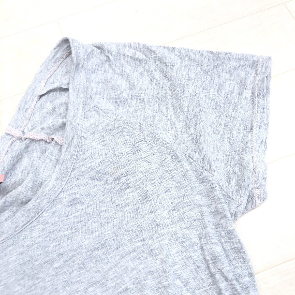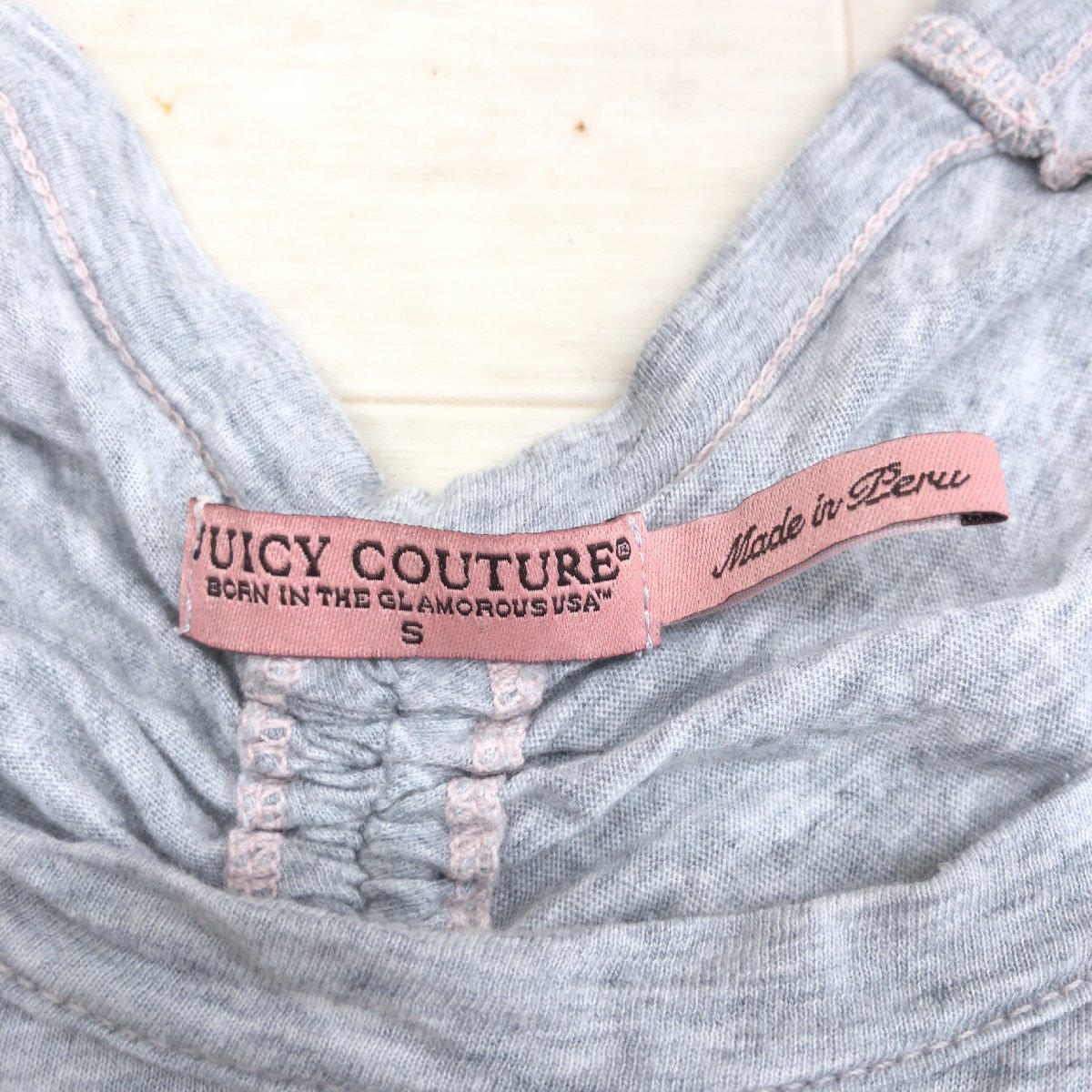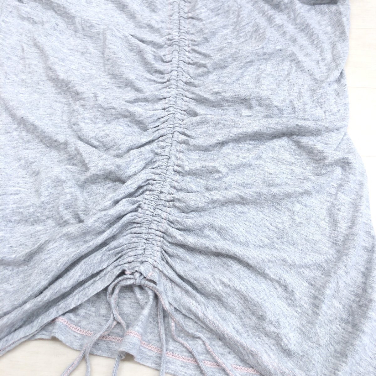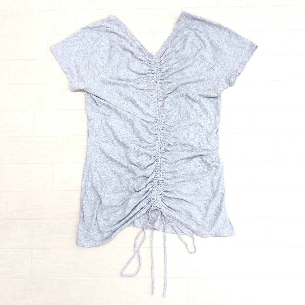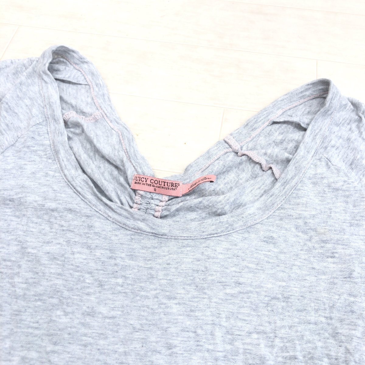 JUICY COUTURE ジューシークチュール バックギャザー ラウンドネック カットソー S グレー 半袖 Tシャツ ロゴ刺繍 レディース 女性用
