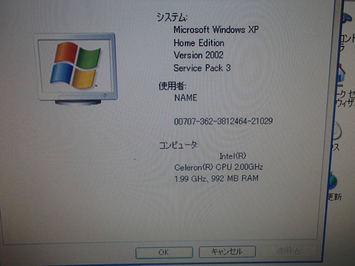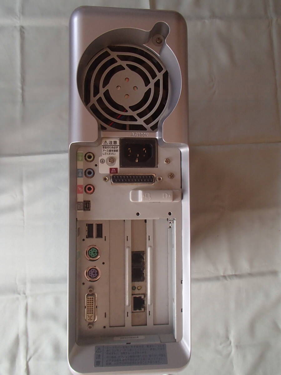 | 商品説明 | ◆ PC ① CPU Celeron(R) 2.00GHz ② メモリ 512M×2枚 ③ HDD 30GB ・入っていなかったので手持ちのものを使いました。 (おまけ程度です) ・OS(WindowsXP)は、テストのためにインストールしまし たので、削除した状態でのお渡しです。 ④ DVD R/RW ・OSをインストールしましたので、読み込みはできました。 ・書き込みは、未確認です。 ・トレイが少し出にくいです。 ⑤ FDD ・読み込みは、確認しました。 ・書き込みは、未確認です。 ・蓋が壊れています。・・・・写真あり ⑥ 付属品 ・マウス、キーボード、電源コードは付属しません。 ・取説類はありません。 ◆ ディスプレイ ・写真で確認してください。 ※ 友人から以前にいただいたもので、ずっとそのままにな っていました。何方かに使っていただければ幸いです。 |