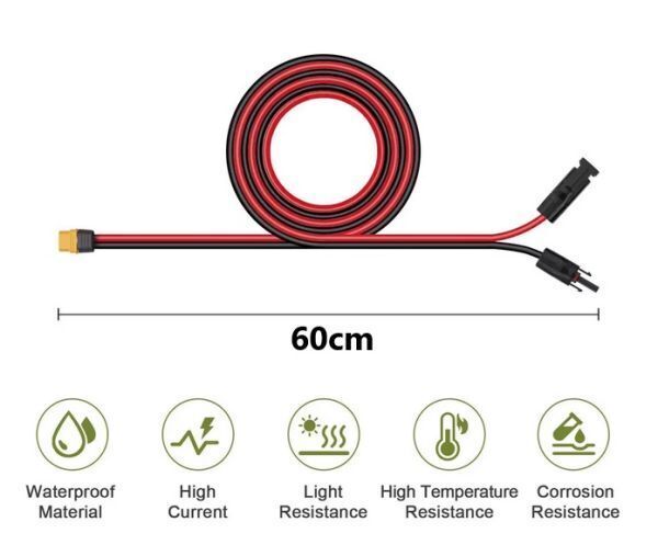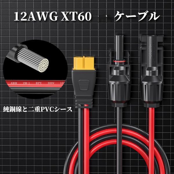 【新品】XT60 102AWG ソーラーコネクター 充電ケーブル MC4からXT60ポート ソーラーパネル 変換アダプター 太陽光パネル用 60cm E576