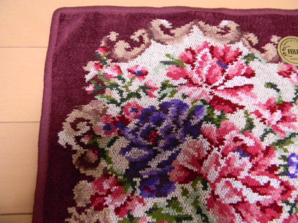 ◇◆ FEILER ◆◇ タオルハンカチ シェニール織 ボルドー ワイン 花柄