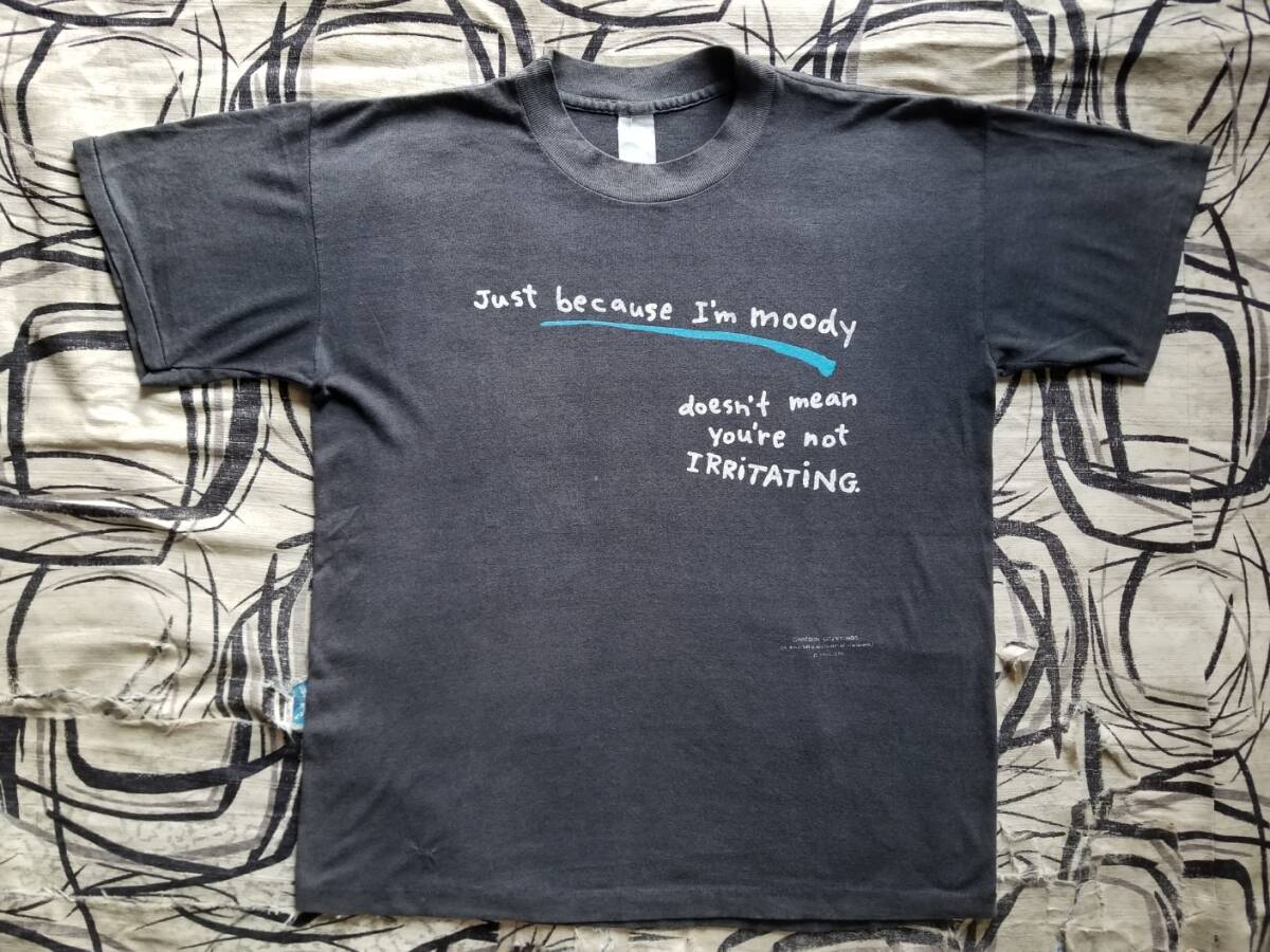 雰囲気 色褪せ フェード 黒ボディ 炭黒 80s 90s ビンテージ オリジナル ダメージ SHOEBOX GREETINGS メッセージ プリント Tシャツ / USA製