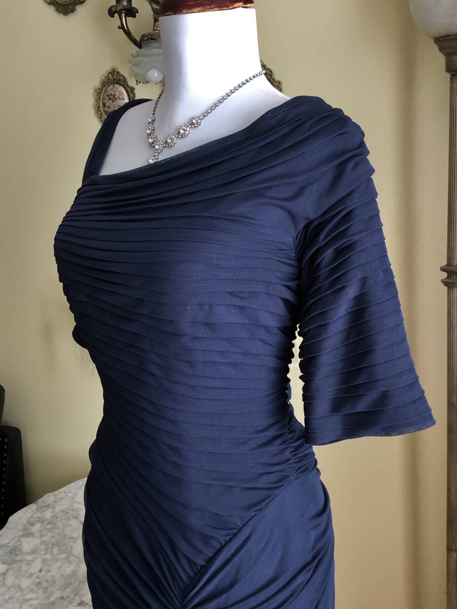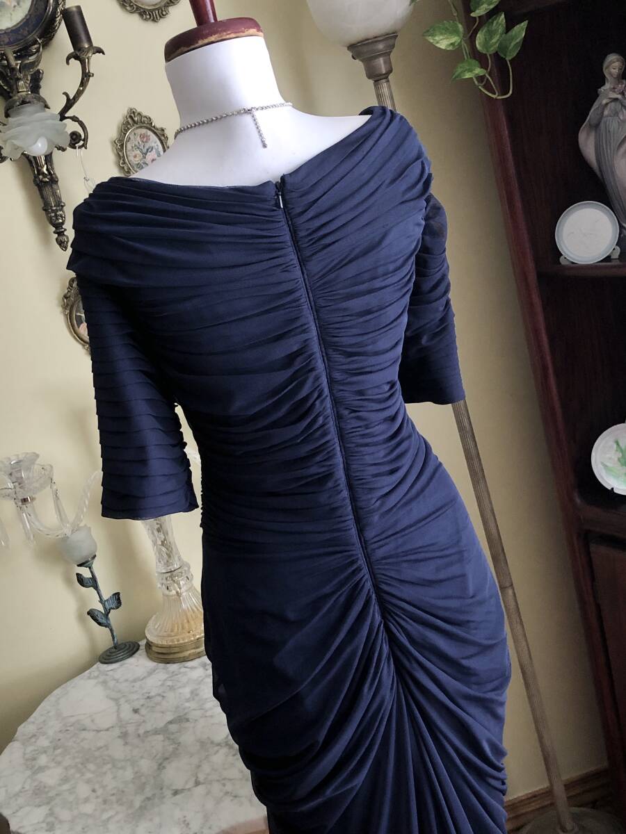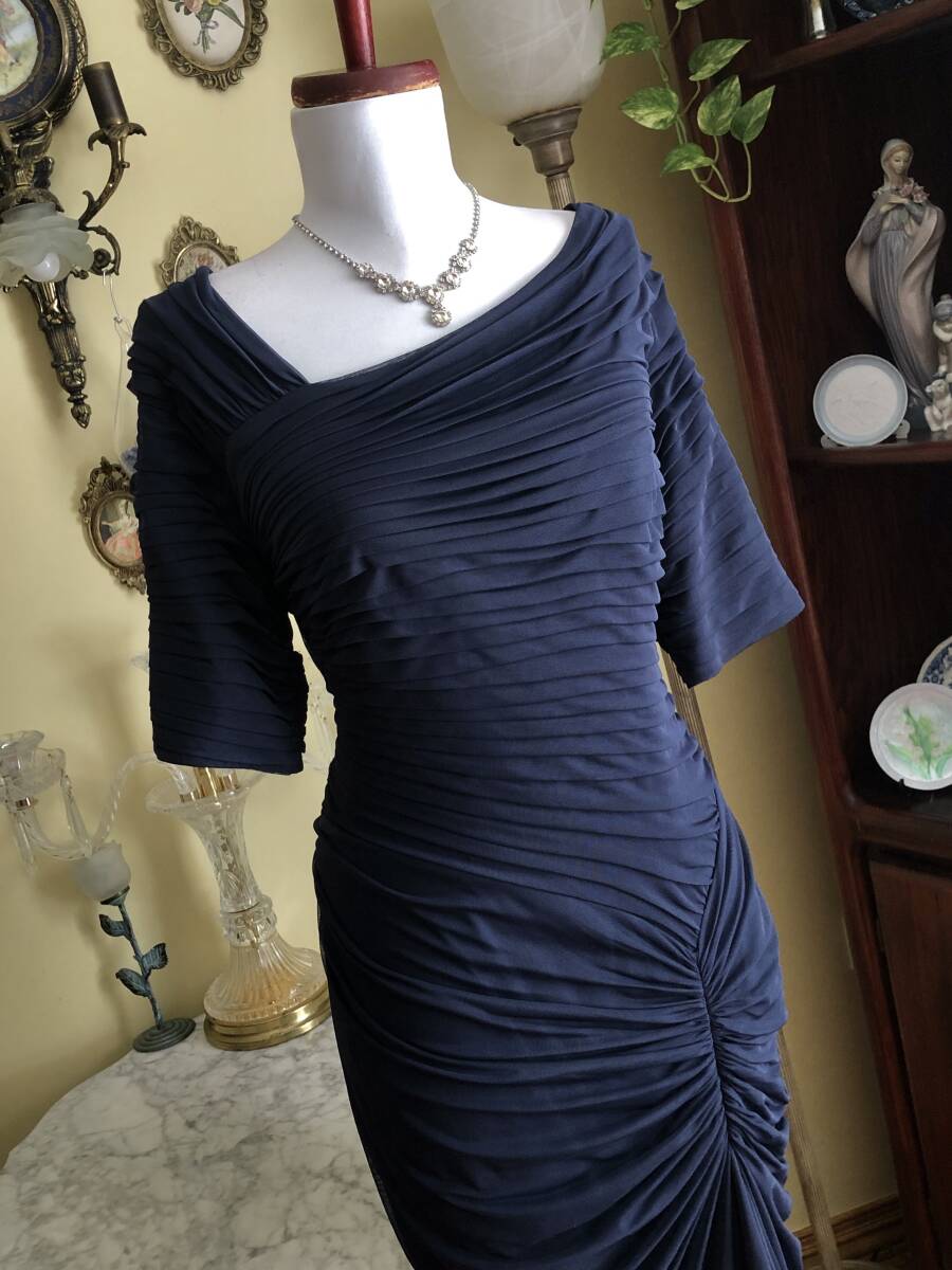 【状態】中古 大変綺麗なお品です。 【ブランド】TADASHI SHOJI 【サイズ】表示サイズ/us(アメリカ)XL 日本対応サイズ目安/ 17号サイズぐらい *個人差がございます。必ず採寸をご参照ください。 【採寸】平置き採寸です。 身幅51㎝、ウエスト43cm、ヒップ53cm、着丈145㎝ *ストレッチします 【カラー】濃紺 【素材】ナイロン93%、スパンデックス7% 【裏地の素材】ポリエステル100% 【着脱】後ファスナー |