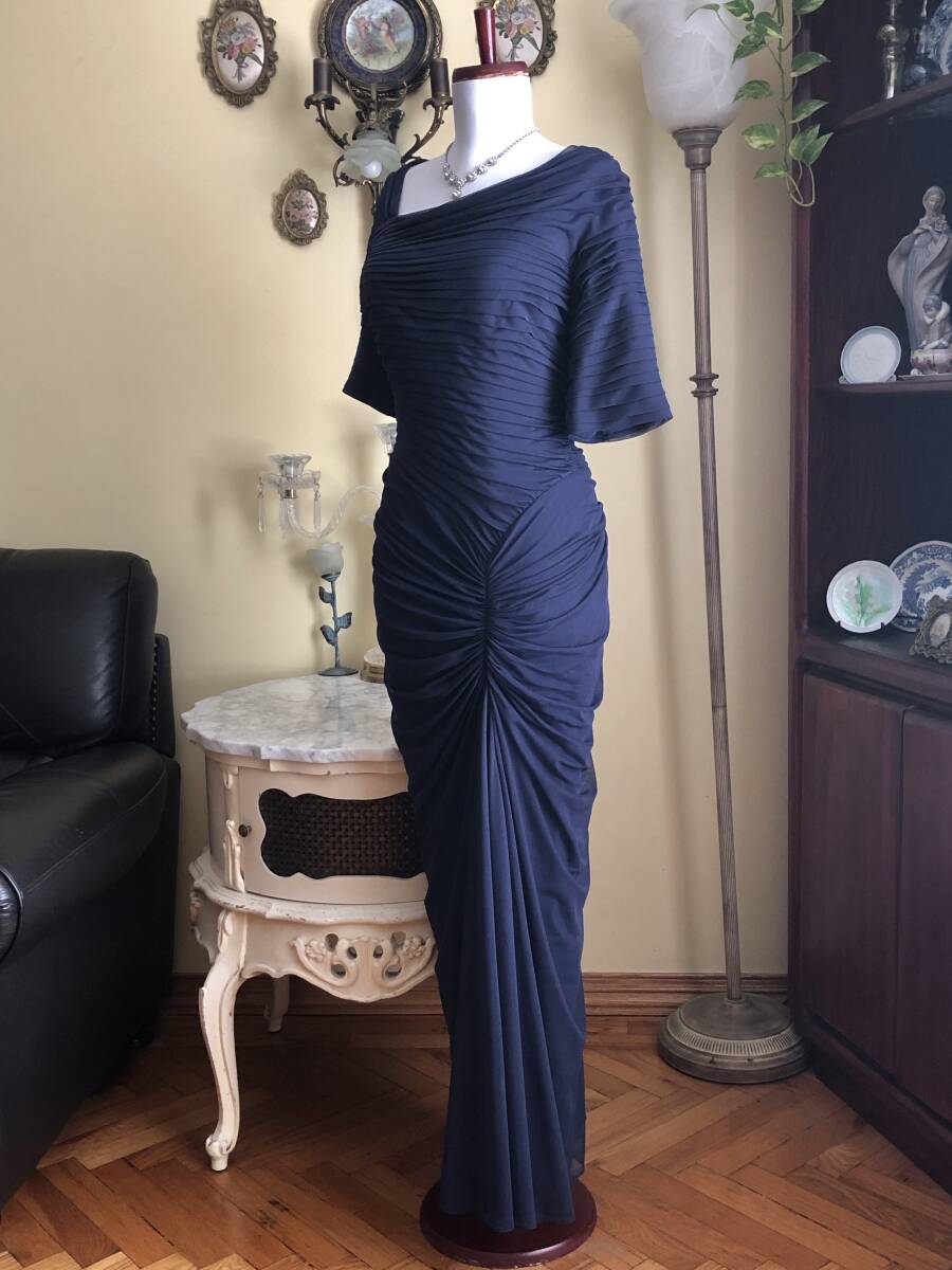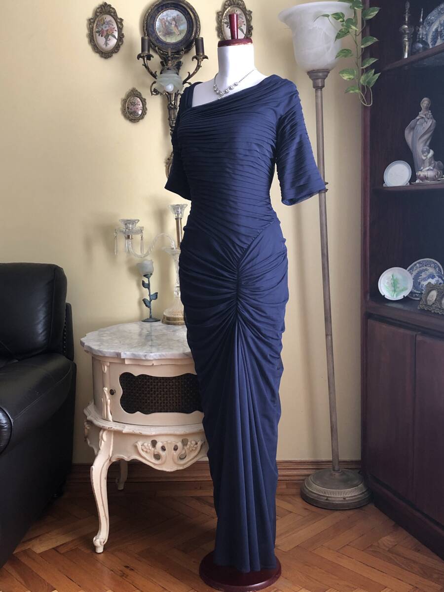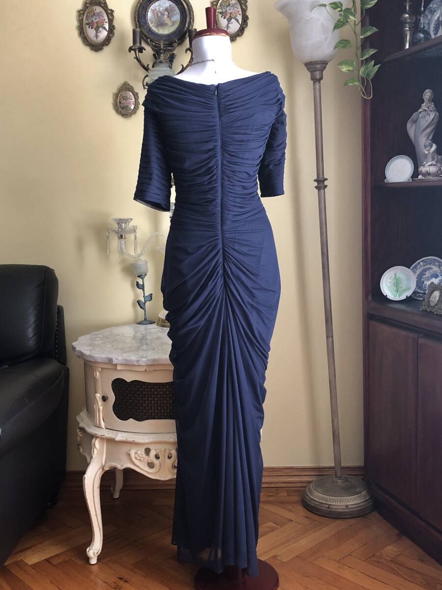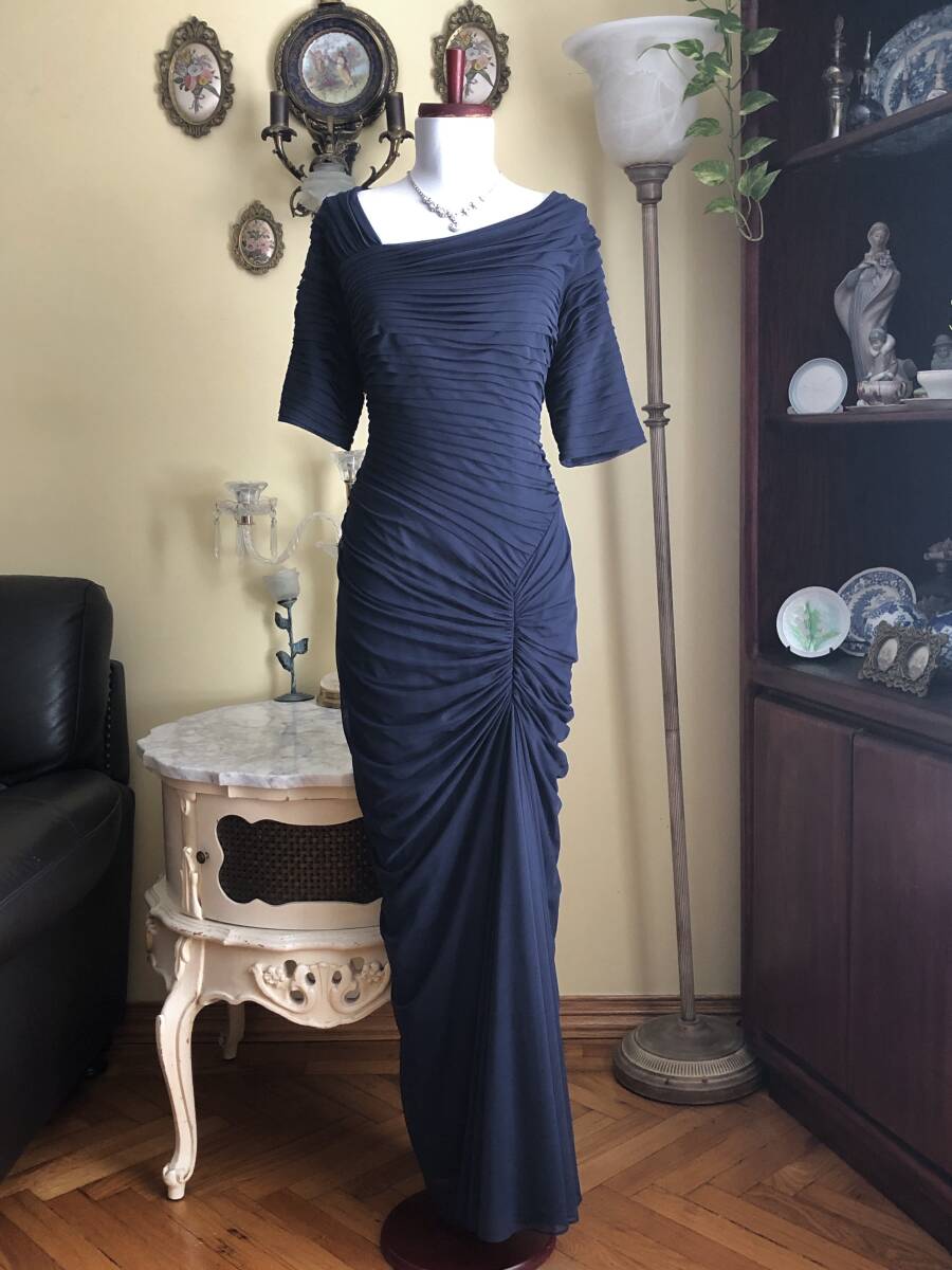 【状態】中古 大変綺麗なお品です。 【ブランド】TADASHI SHOJI 【サイズ】表示サイズ/us(アメリカ)XL 日本対応サイズ目安/ 17号サイズぐらい *個人差がございます。必ず採寸をご参照ください。 【採寸】平置き採寸です。 身幅51㎝、ウエスト43cm、ヒップ53cm、着丈145㎝ *ストレッチします 【カラー】濃紺 【素材】ナイロン93%、スパンデックス7% 【裏地の素材】ポリエステル100% 【着脱】後ファスナー |