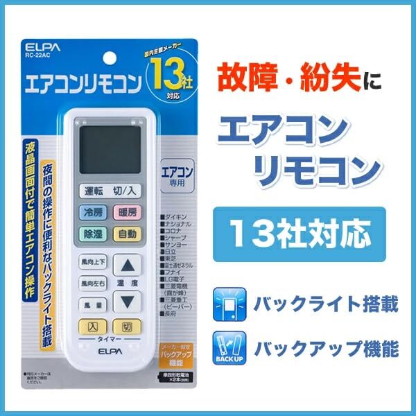 商品名 | エルパ (ELPA) エアコンリモコン エアコン 汎用 動作距離約7m RC-22AC |