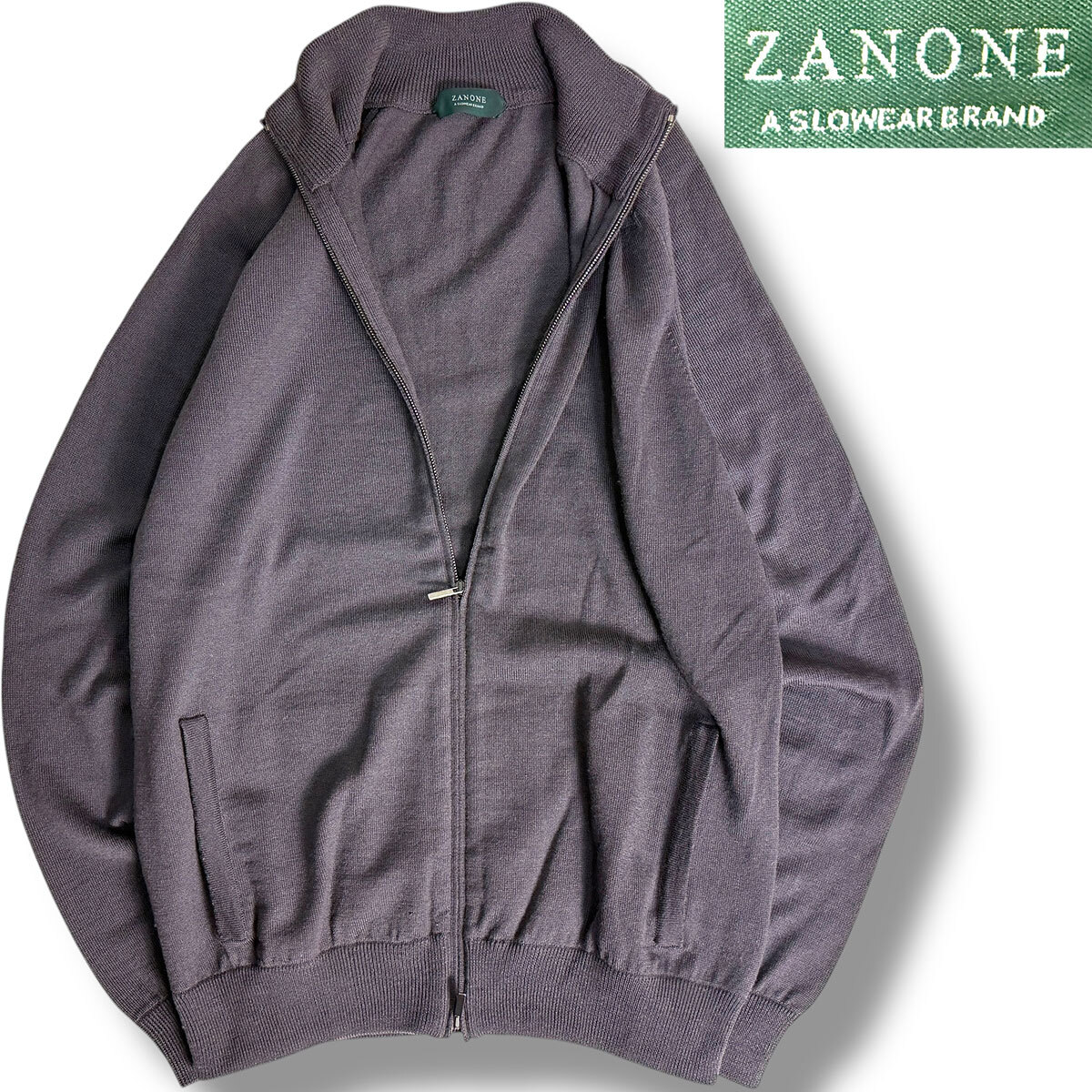 J7029 超美品 ザノーネ 7ETJP4 ZC239 ジップアップニット ドライバーズニット ブラウン 48 ZANONE