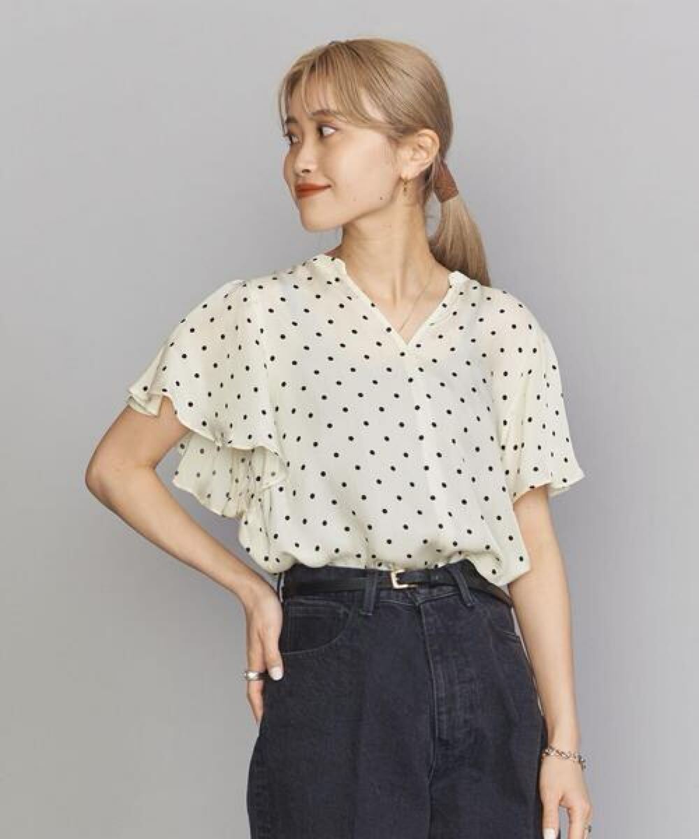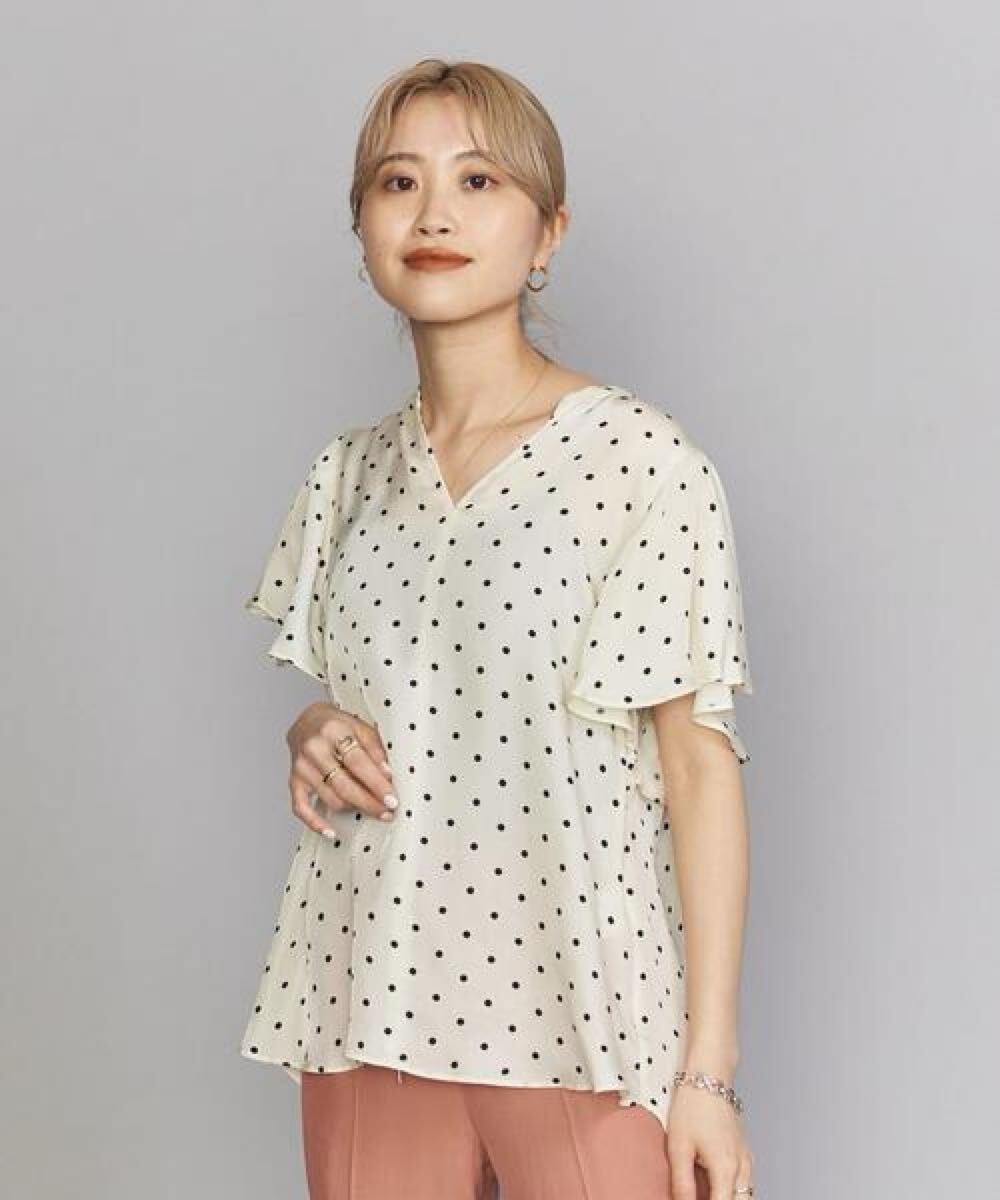 レトロ感・甘さ共に控えめで今っぽく、女性らしい可愛さも秘めたブラウスです。