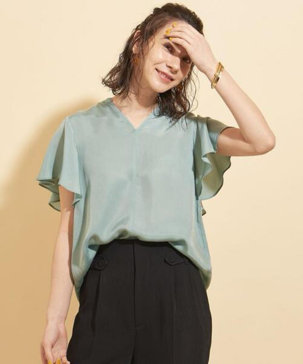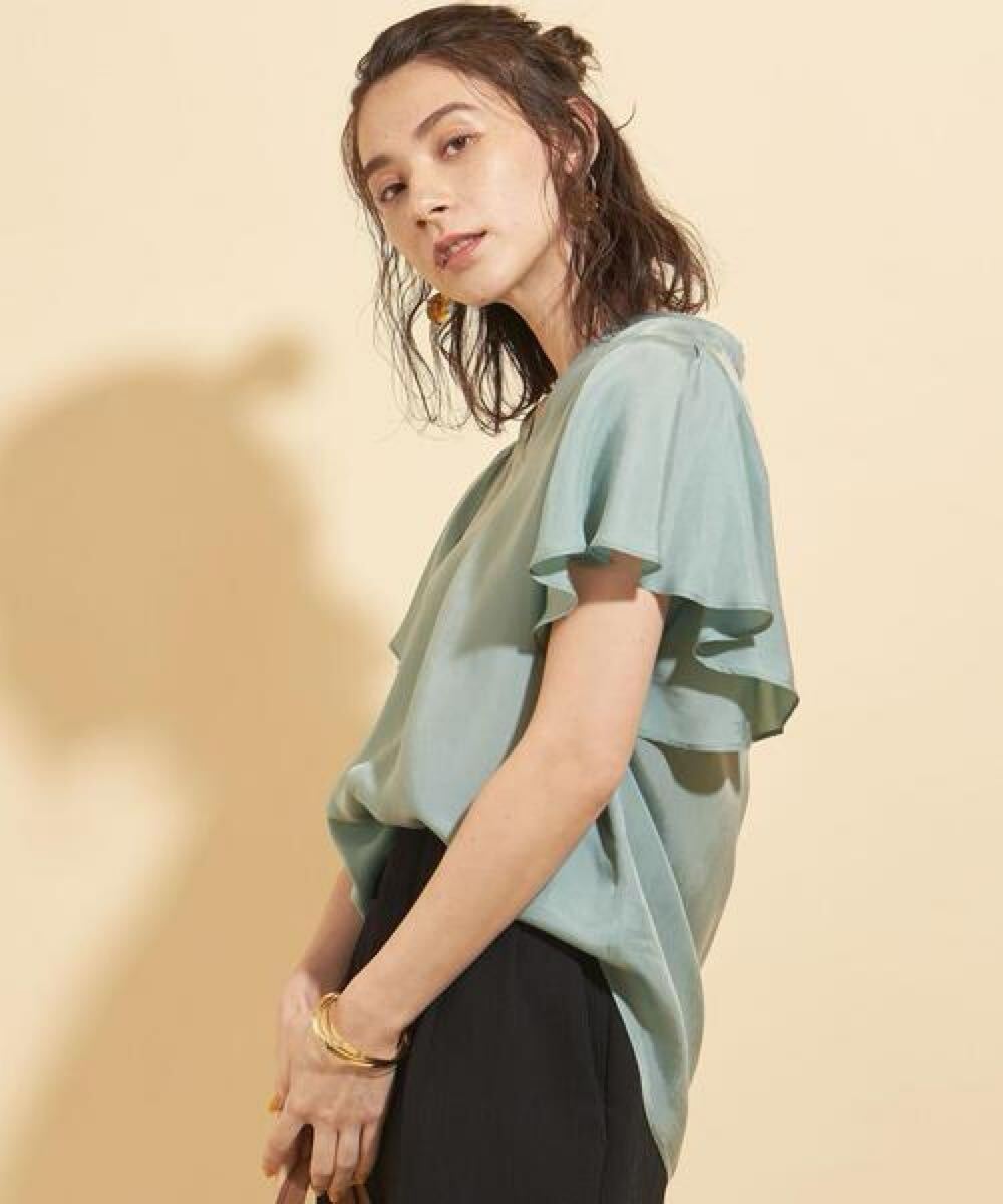 ほんのり透け感があり、フレアスリーブは歩いたり風が吹くと靡く清涼感たっぷり◎