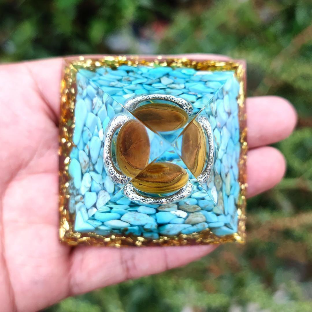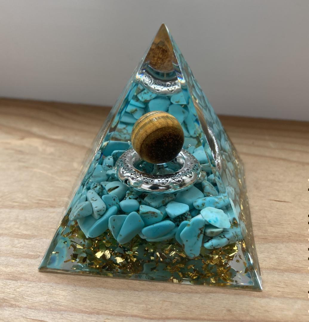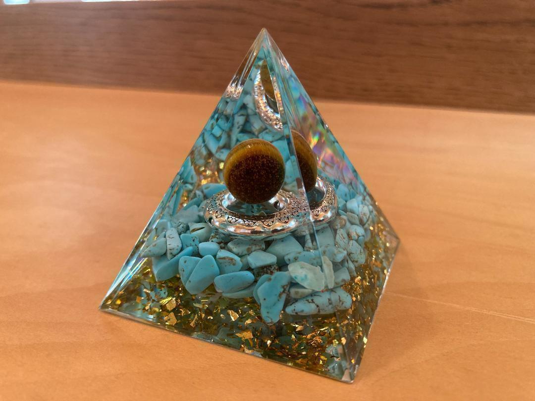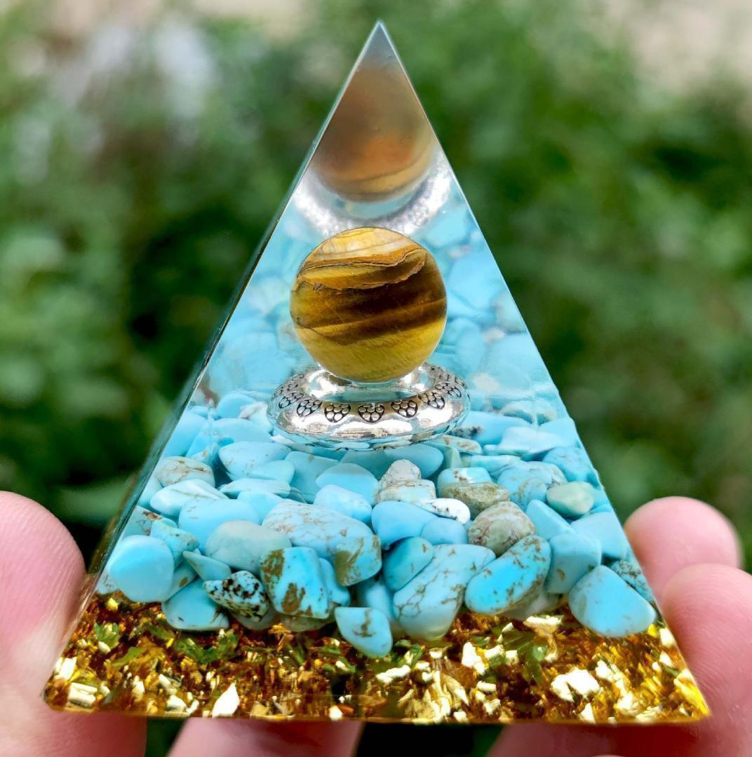 【商品名】G045 オルゴナイト ピラミッド型 アメジスト タイガーアイ置物 インテリア 浄化