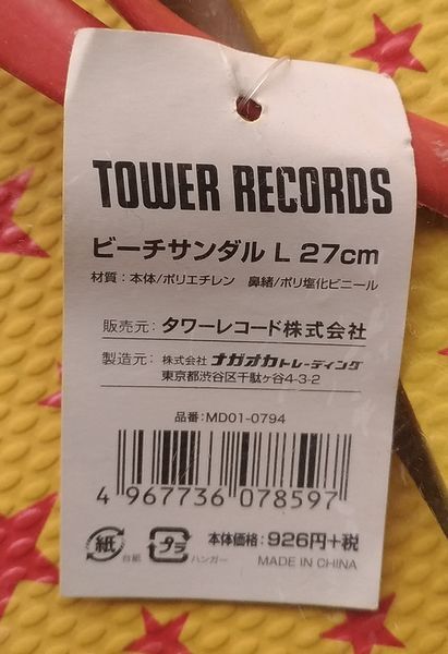 タワレコのビーチサンダルです。サイズはLです。底の全長約27cmです。