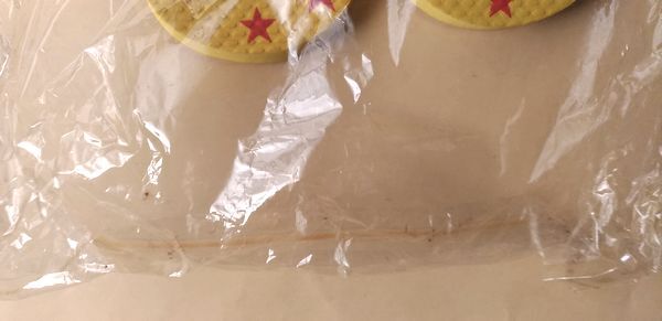 未使用ですが、元々透明の袋に破れあります。袋の粘着部に汚れあります。