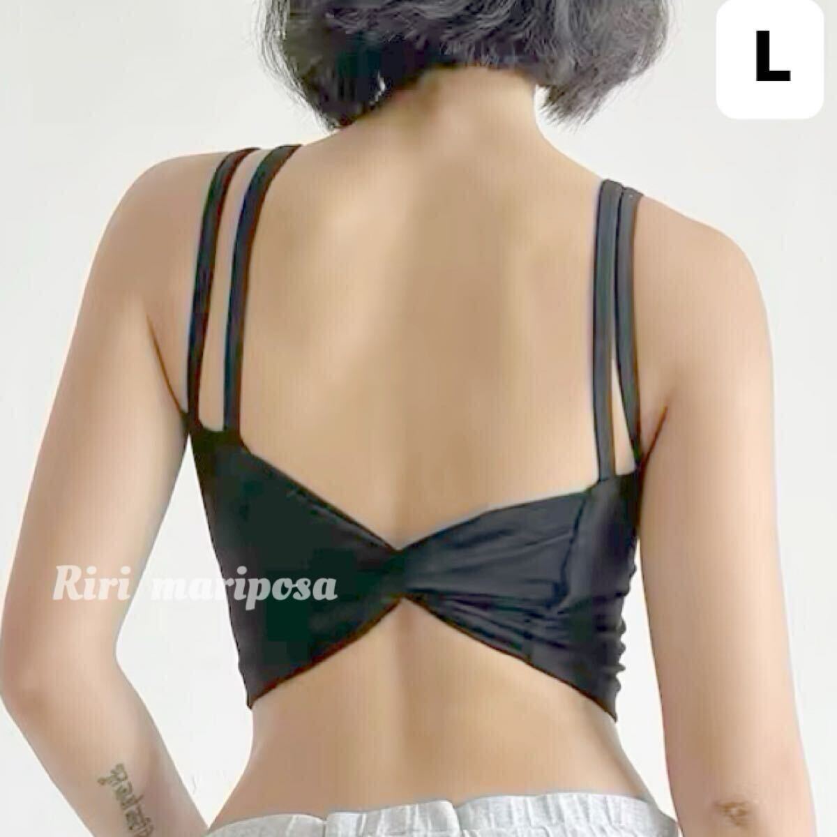 バックツイスト*ロングブラトップ黒Lサイズ スポーツブラ ヨガタンク ヨガウェア トップス タンクトップ