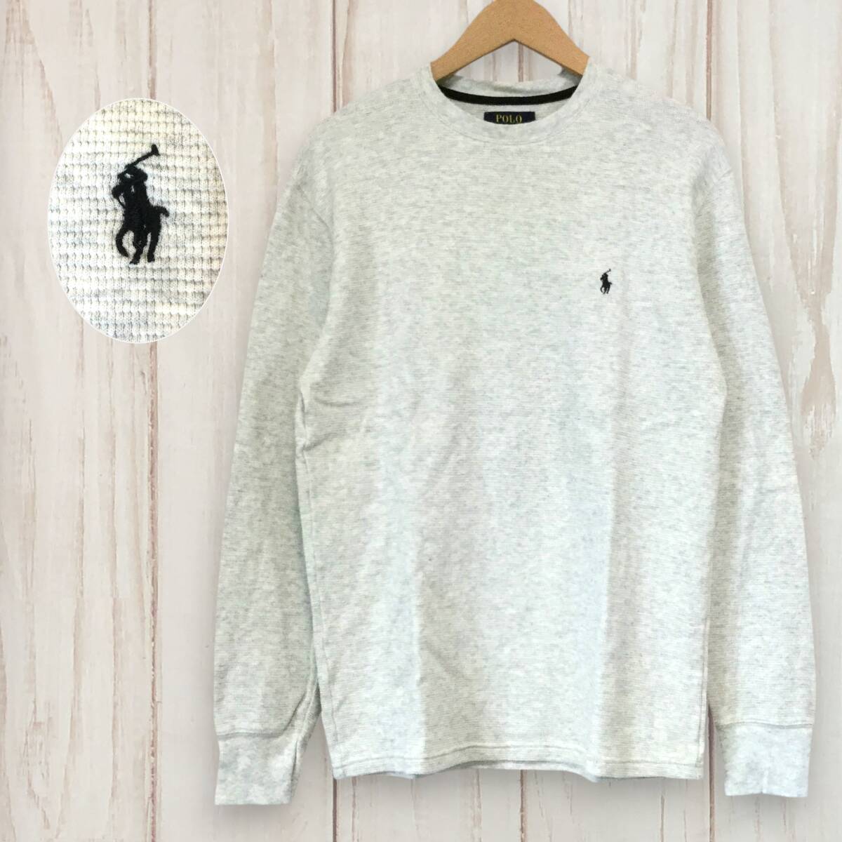 【ポロラルフローレン 長袖ロゴ刺繍Tシャツ】 M アイボリー POLO RALPH LAUREN 古着 メンズ [250627-030]