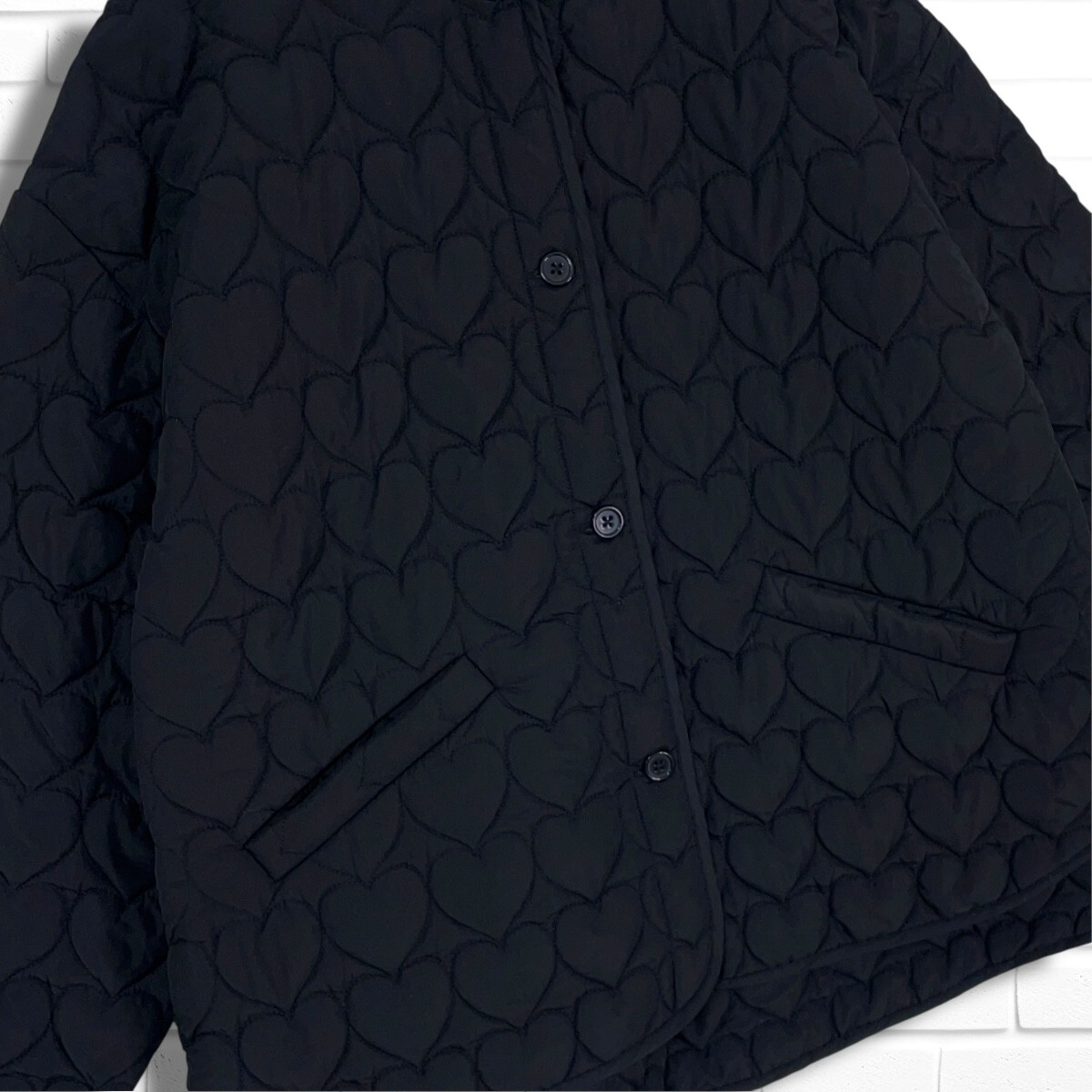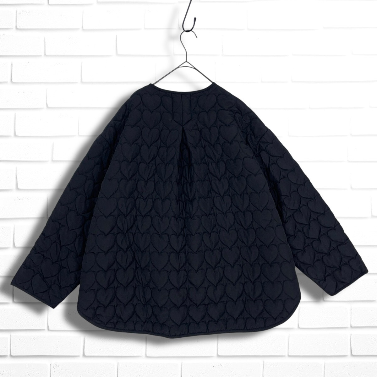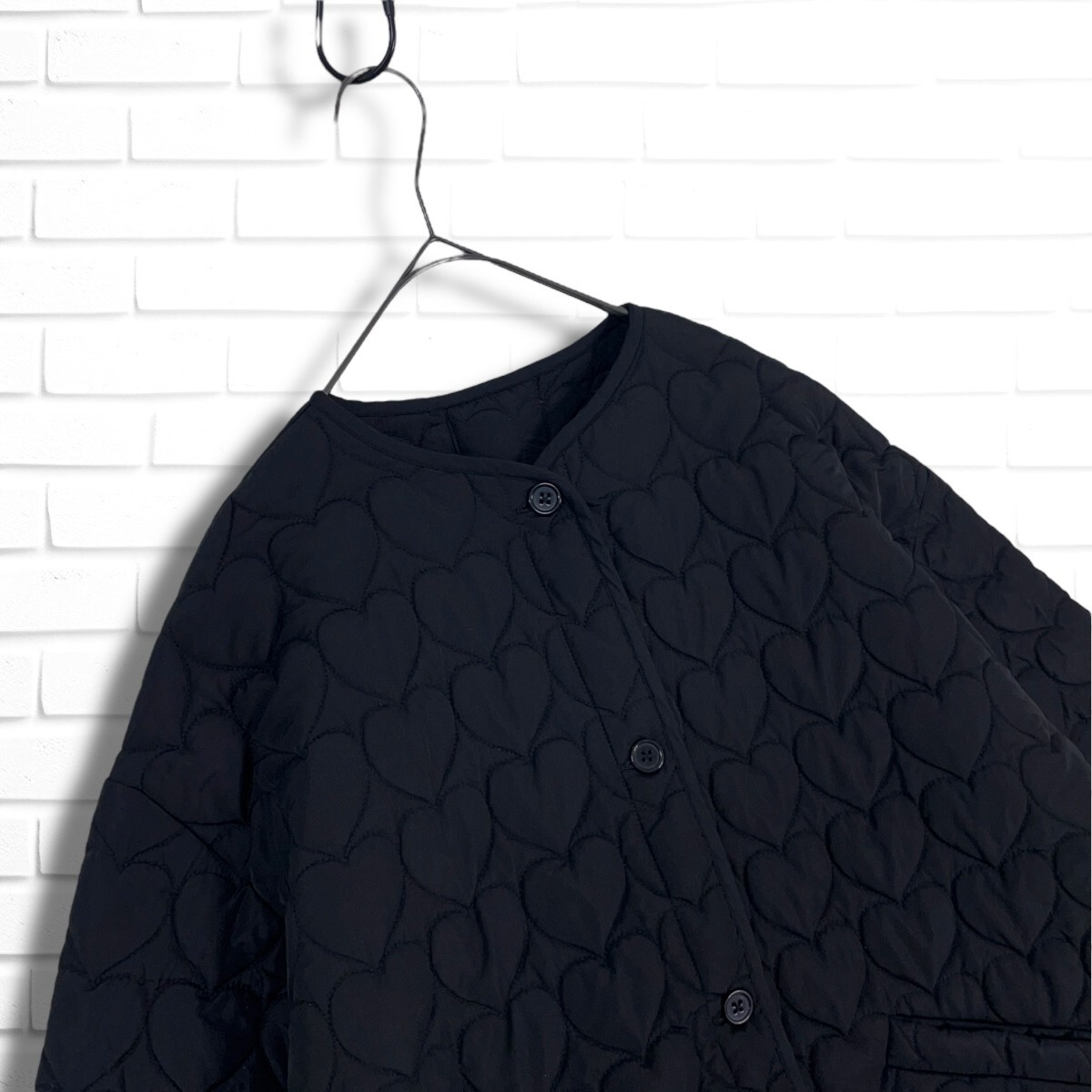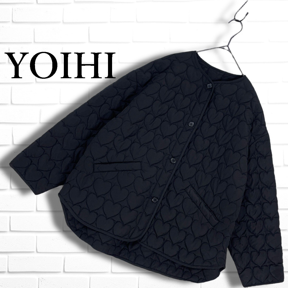 ◆美品◆ YOIHI ヨイヒ ハート キルティング 中綿 ゆったり♪ ノーカラー ジャケット 黒 レディース F ◆送料無料◆ 4915H◇