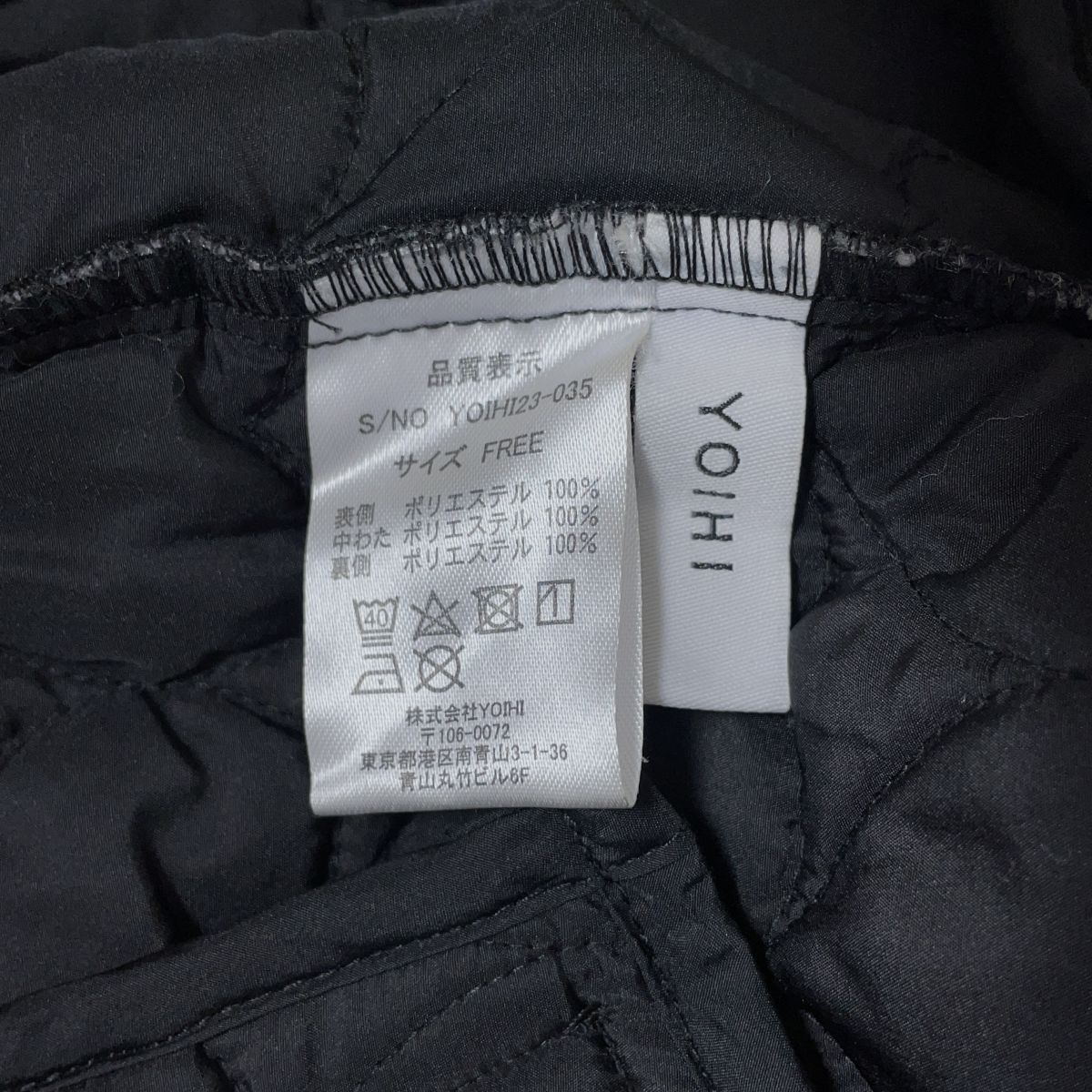 ◆美品◆ YOIHI ヨイヒ ハート キルティング 中綿 ゆったり♪ ノーカラー ジャケット 黒 レディース F ◆送料無料◆ 4915H◇