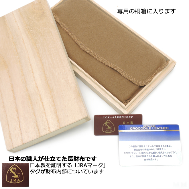 クロコダイル 長財布 メンズ レディース ブラウン シャイニング加工 一枚革 センター取り 無双 日本製 JRA 新品