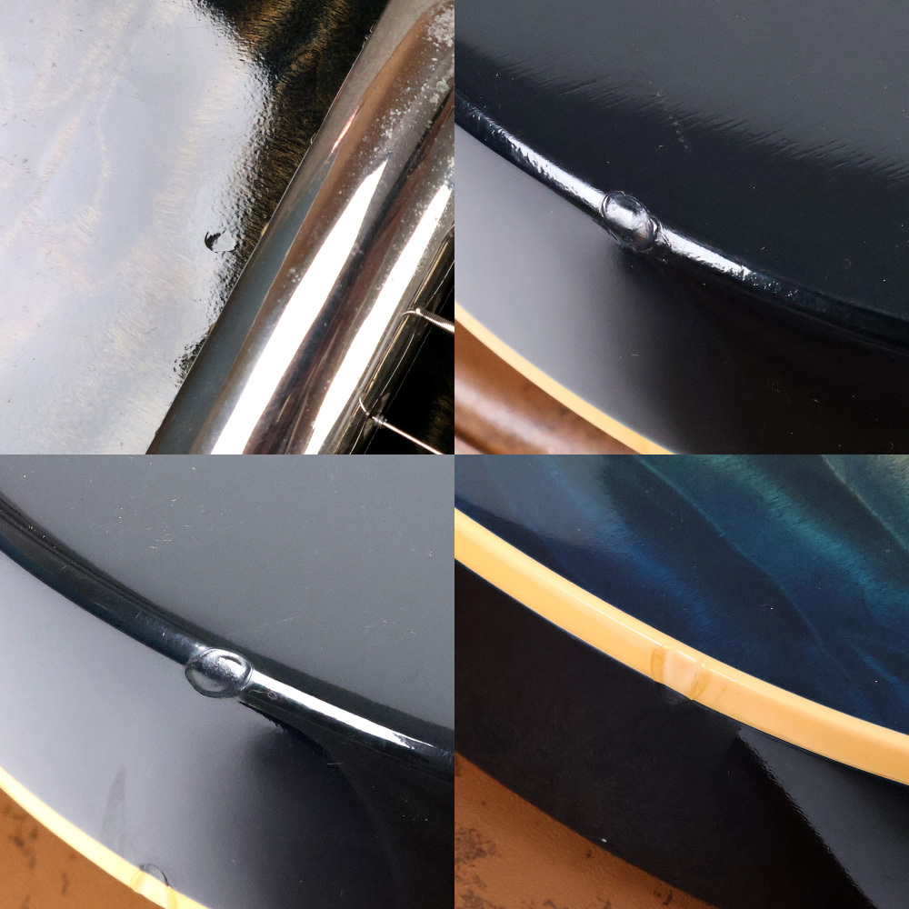 ボディーバック、ボディーエンド側のサイドとのかどに豆粒大のやや大きな打痕、塗装かけあり。