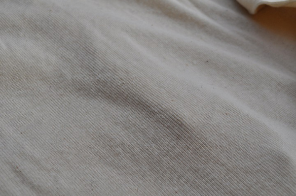 キナリのコットン特有の小さな黒い斑点が所々にありますがこれは洗ううちに落ちます、