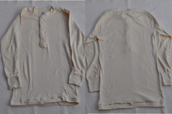 訳あり(シミ)画像参照 サイズS ヘンリーネック Wallace Berry Shirtsアメリカ軍放出温かいアンダーシャツ