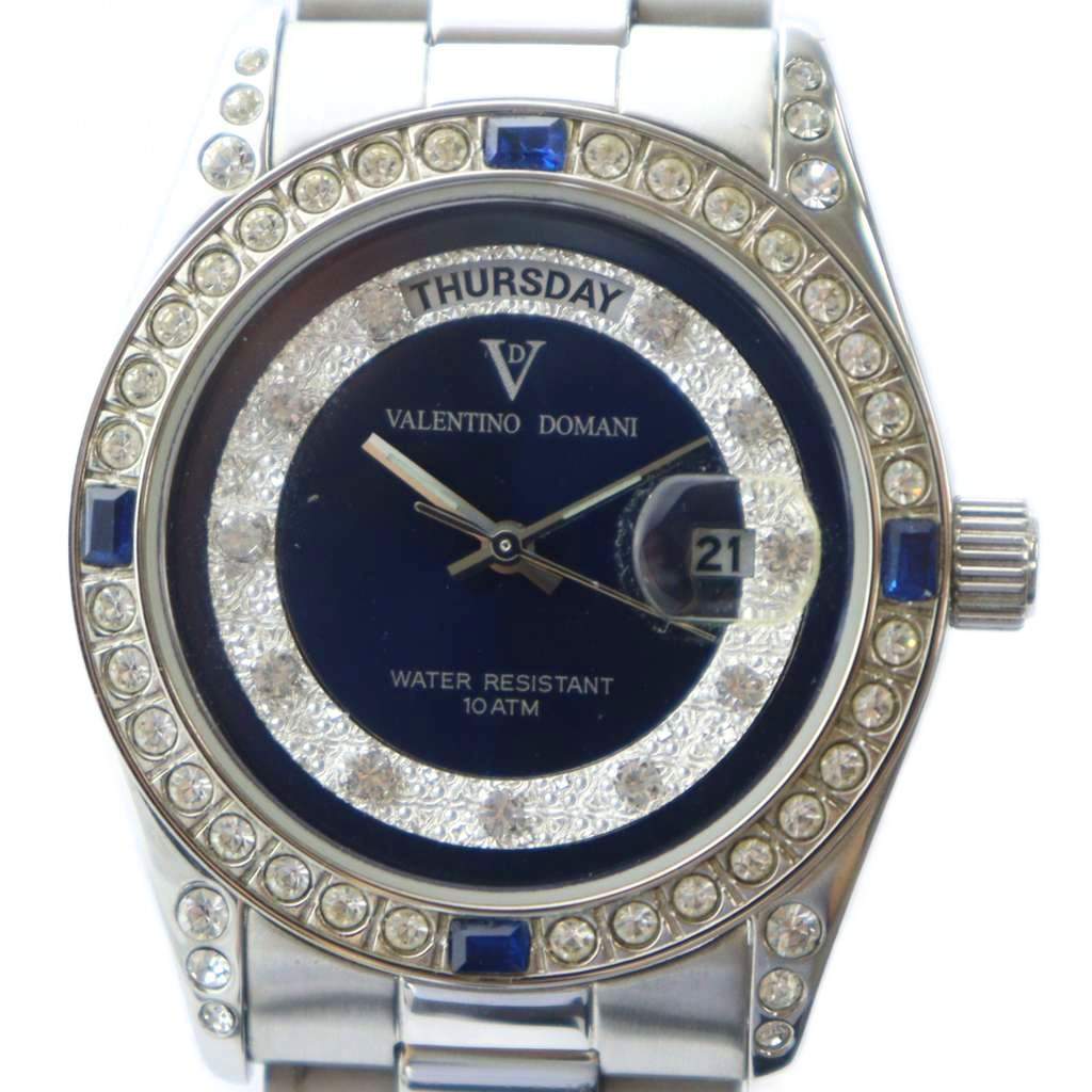 バレンチノドマーニ Valentino Domani 腕時計 ウォッチ クォーツ ラインストーン カレンダー付き ロゴ シルバー色 VD-2007