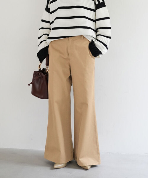 キーワード:チノパン レディース スタンダード フルレングス フレアパンツ レギュラー 無地