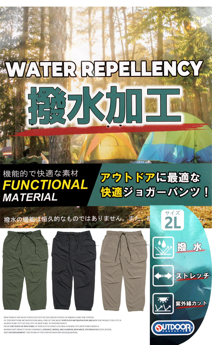 商品名 | 【新品】 4L ブラック アウトドアプロダクツ(OUTDOOR PRODUCTS) ジョガーパンツ メンズ 大きいサイズ 撥水加工 ストレッチ イージーパンツ |
