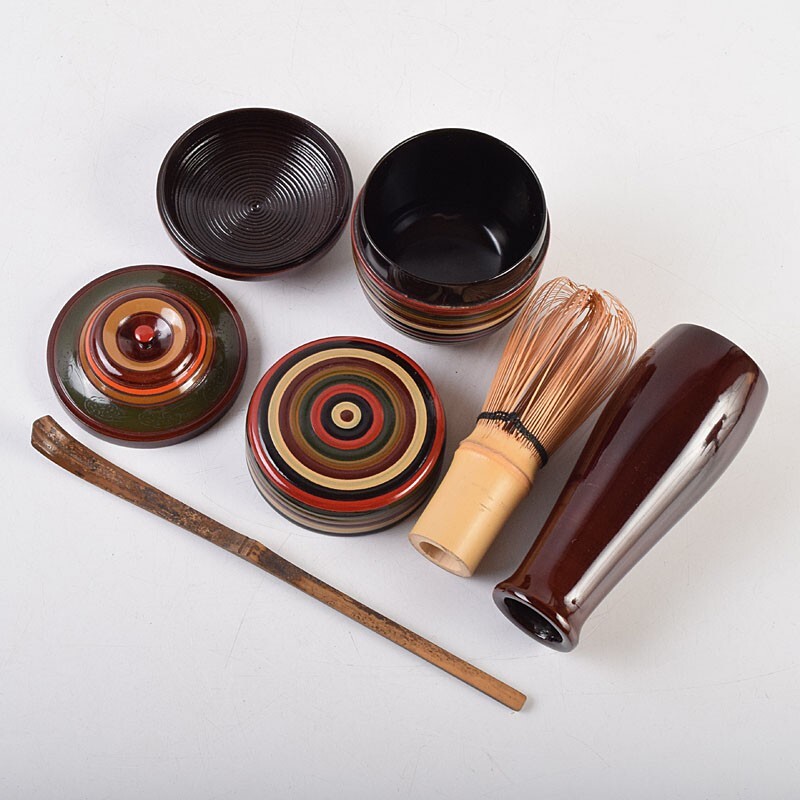 茶道具 糸目塗分 利休茶箱 白釉茶碗 独楽棗など 九点 一式 仕覆付 MTSJ