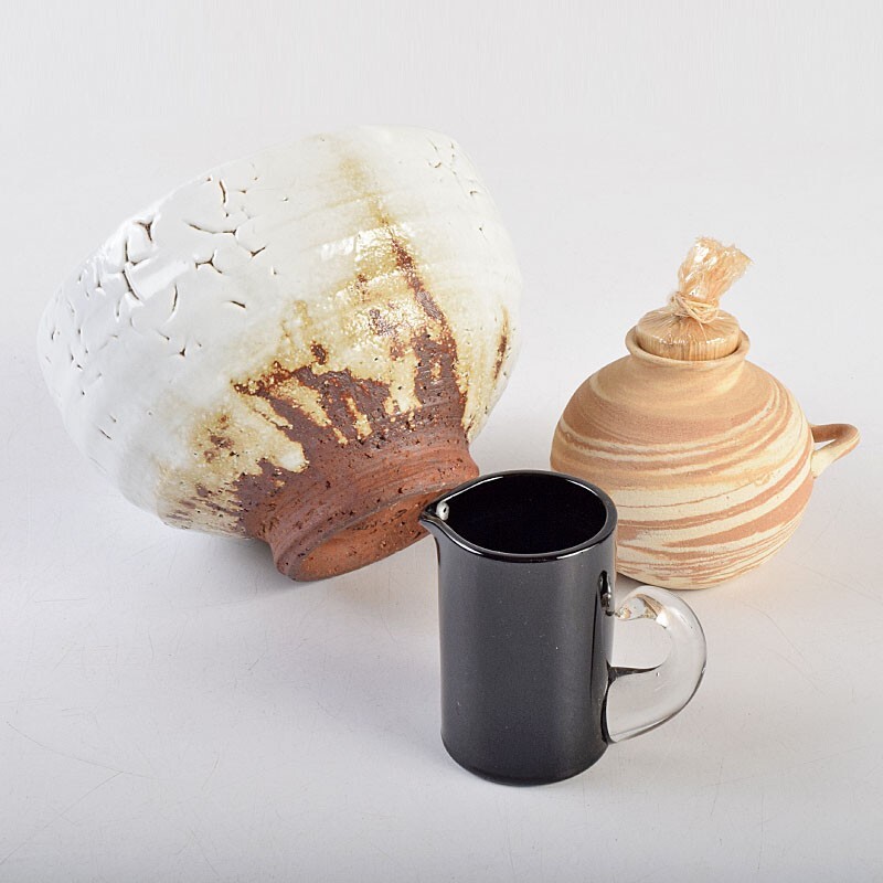 茶箱に傷み、茶碗に銀継ぎ直しが見受けられます。